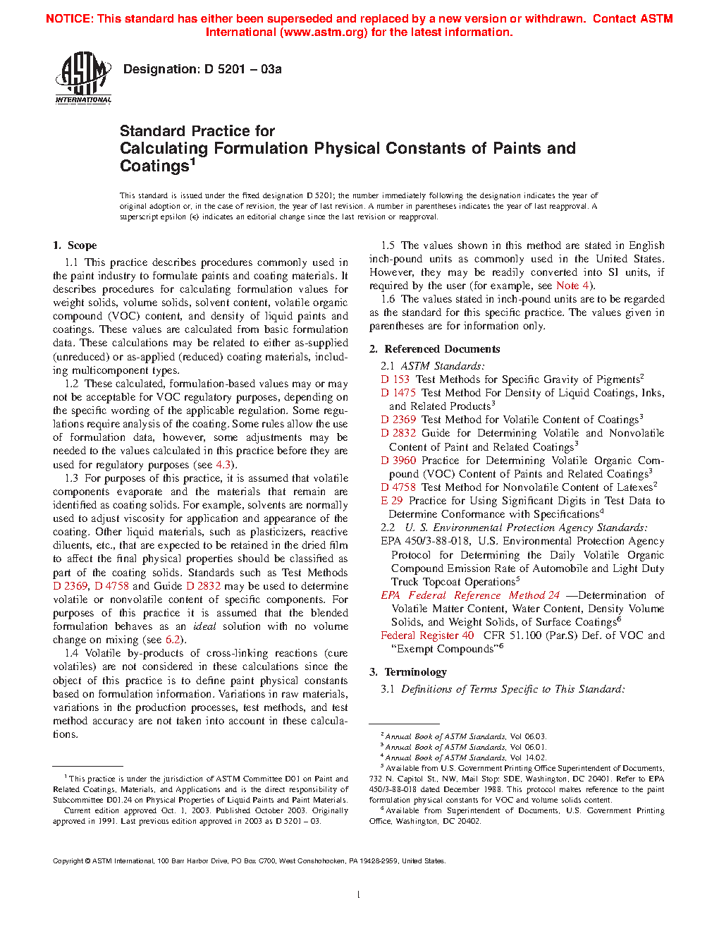 1.1 This practice covers procedures commonly used in the paint industry to formulate paints and coating materials. It describes procedures for calculating formulation values for weight solids, volume solids, solvent content, volatile organic compound (VOC) content, hazardous air pollutant (HAP) content, and density of liquid paints and coatings. These values are calculated from basic formulation data. These calculations may be related to either as-supplied (unreduced) or as-applied (reduced) coating materials, including multicomponent types.