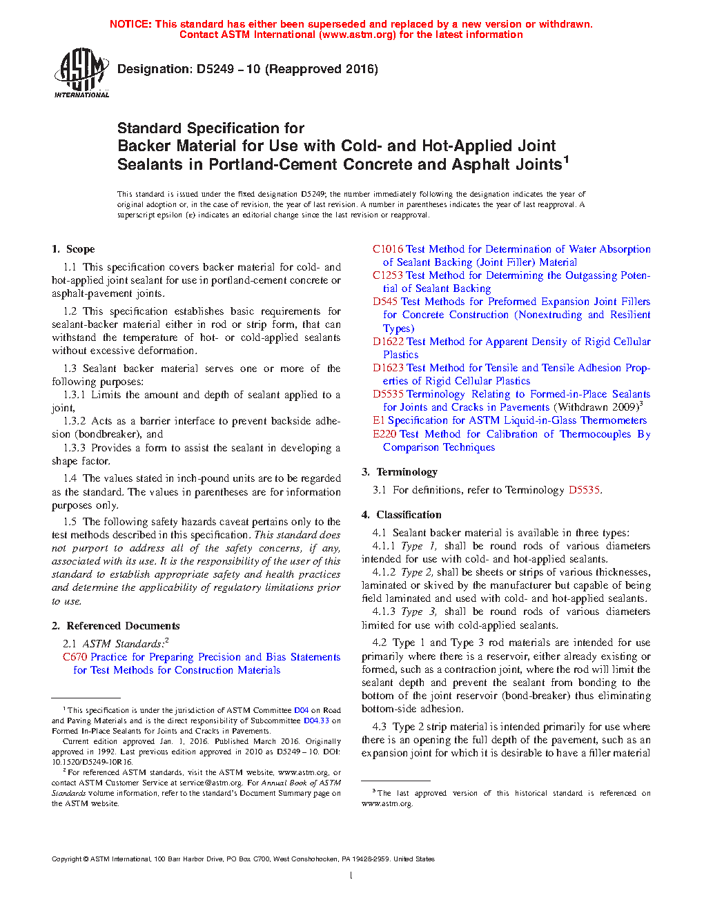 1.2 This specification establishes basic requirements for sealant backer material, either in rod or strip form, that can withstand the temperature of hot- or cold-applied sealants without excessive deformation.