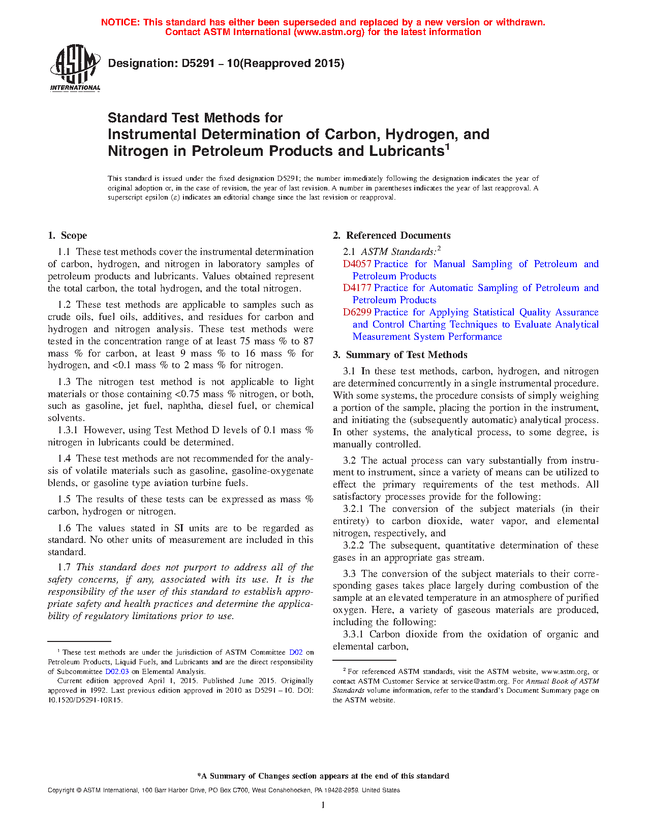 Standard Test Methods for Instrumental Determination of Carbon, Hydrogen, and Nitrogen in Petroleum Products and Lubricants