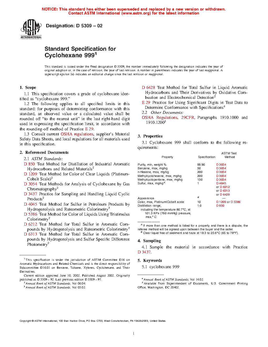 1.1 This specification covers a grade of cyclohexane identified as “cyclohexane 999.”