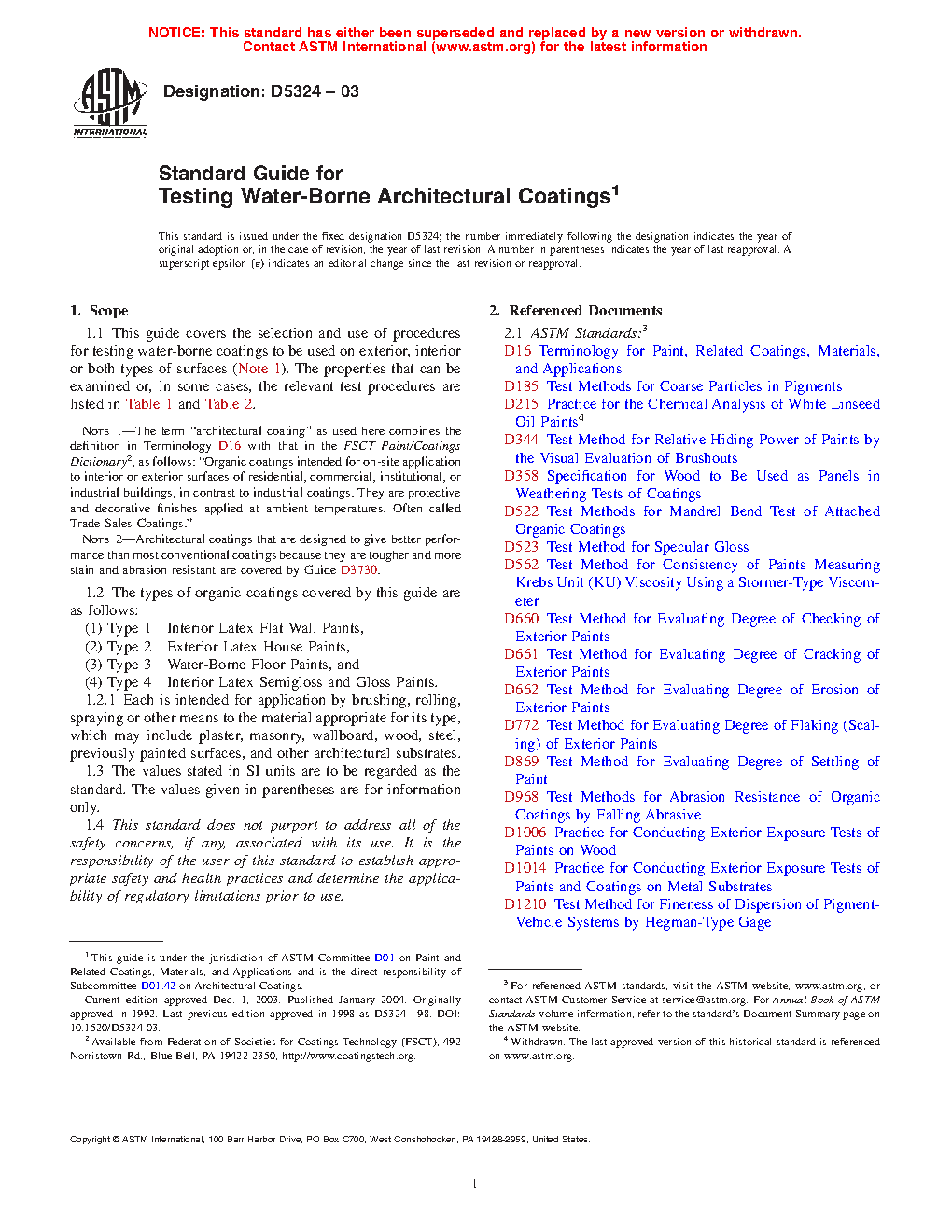 1.1 This guide covers the selection and use of procedures for testing water-borne coatings to be used on exterior, interior or both types of surfaces (Note 1). The properties that can be examined or, in some cases, the relevant test procedures are listed in Table 1 and Table 2.