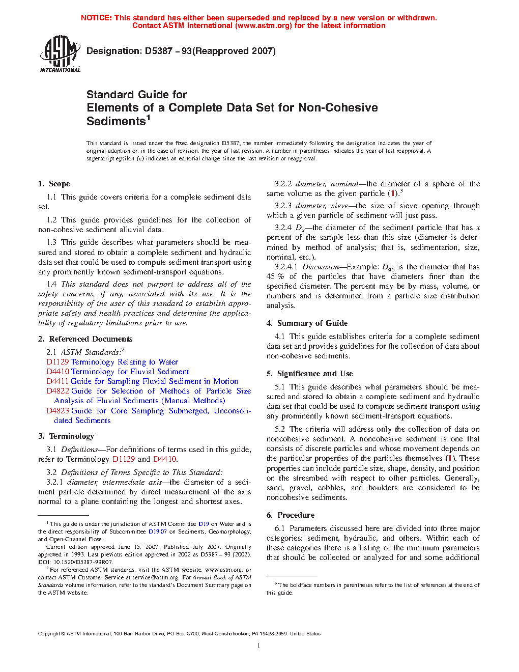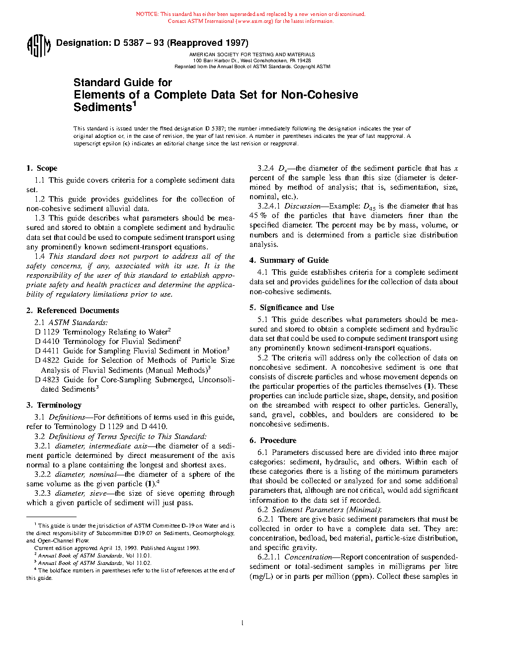 1.3 This guide describes what parameters should be measured and stored to obtain a complete sediment and hydraulic data set that could be used to compute sediment transport using any prominently known sediment-transport equations.