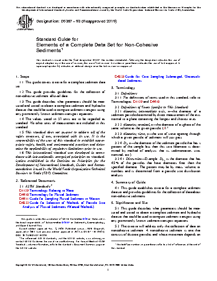 1.2 This guide provides guidelines for the collection of non-cohesive sediment alluvial data.