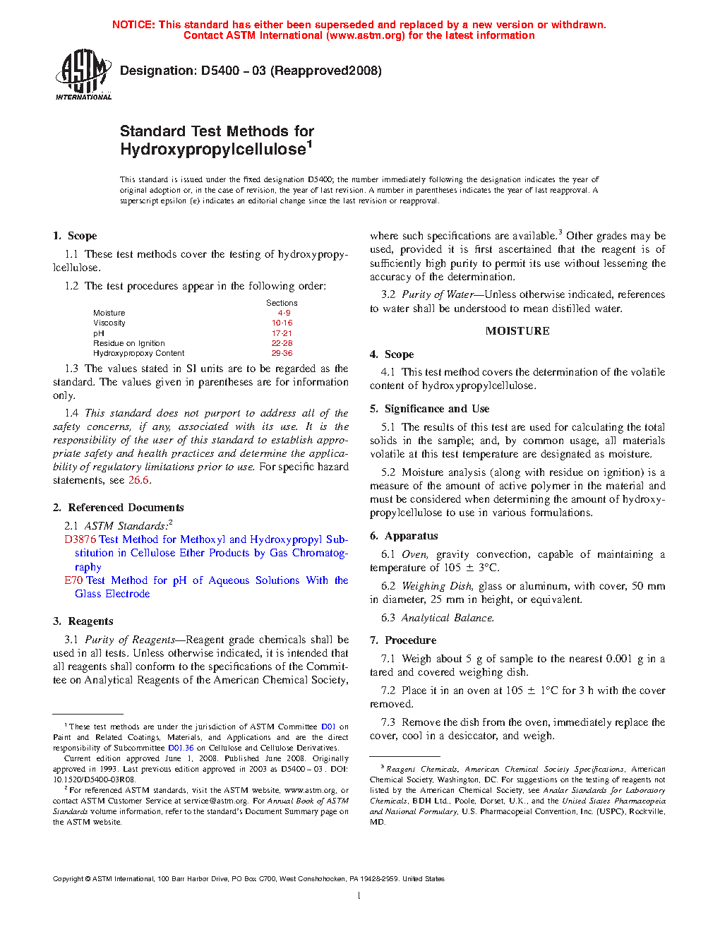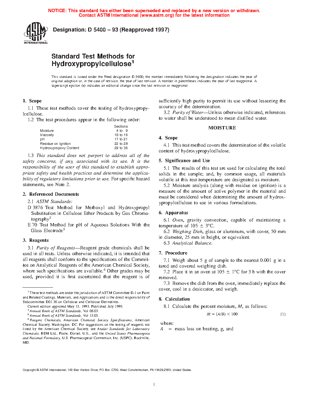 Standard Test Methods for Hydroxypropylcellulose