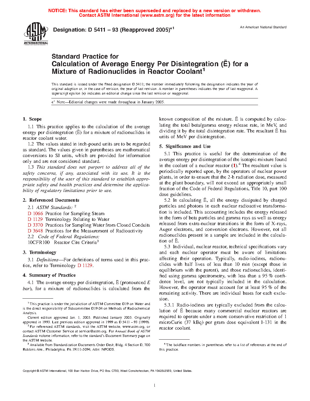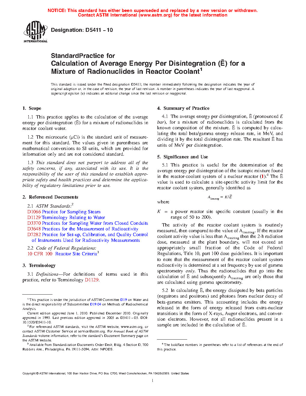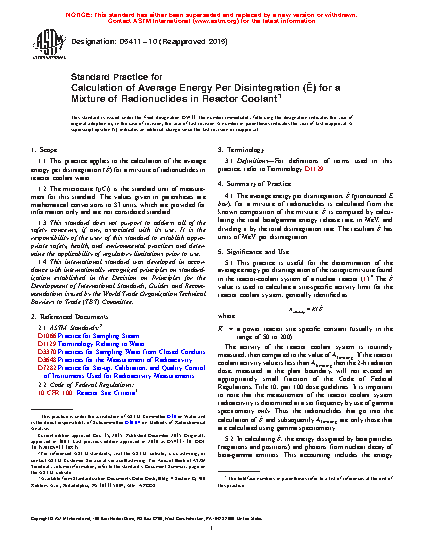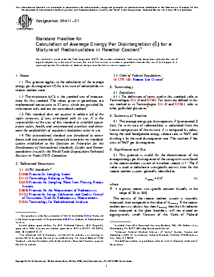 5.1 This practice is useful for the determination of the average energy per disintegration of the isotopic mixture found in the reactor-coolant system of a nuclear reactor (1).5 The
