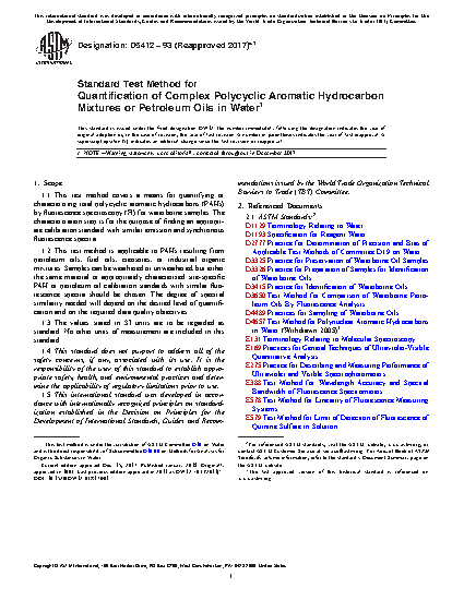 1.2 This test method is applicable to PAHs resulting from petroleum oils, fuel oils, creosotes, or industrial organic mixtures. Samples can be weathered or unweathered, but either the same material or appropriately characterized site-specific PAH or petroleum oil calibration standards with similar fluorescence spectra should be chosen. The degree of spectral similarity needed will depend on the desired level of quantification and on the required data quality objectives.