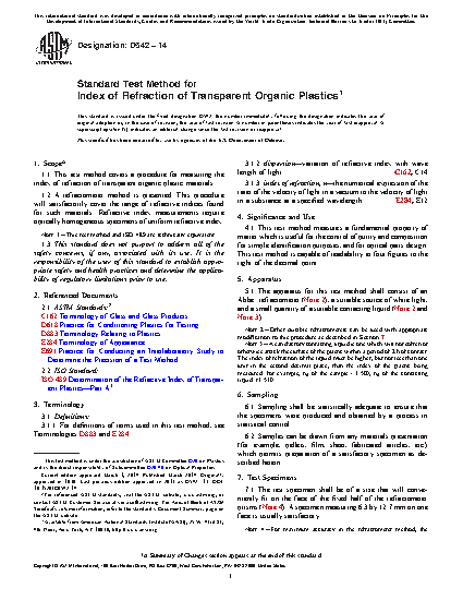 1.1 This test method covers a procedure for measuring the index of refraction of transparent organic plastic materials.