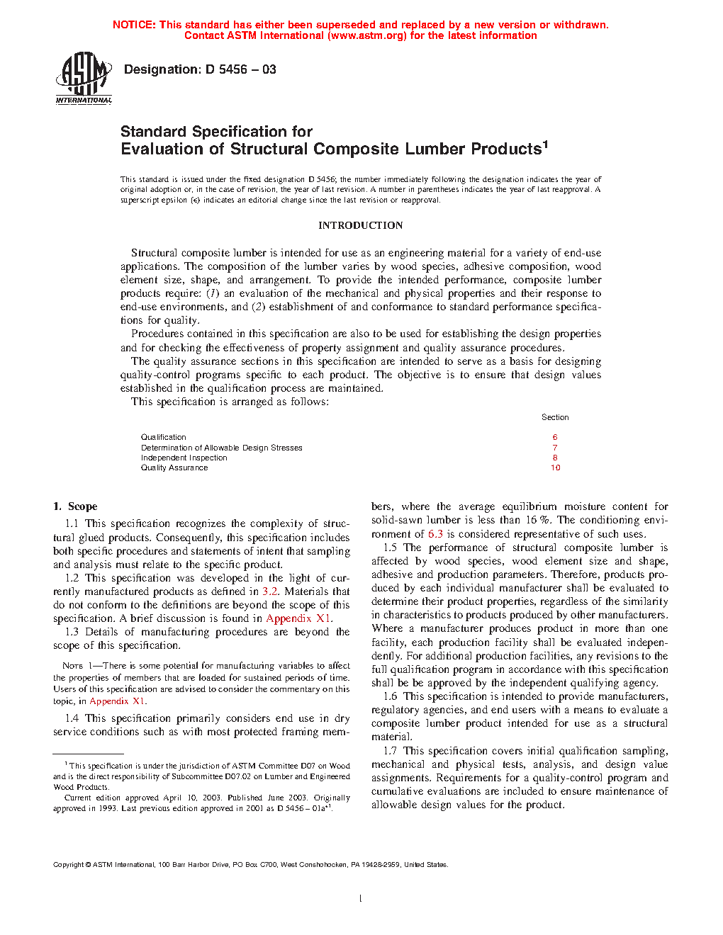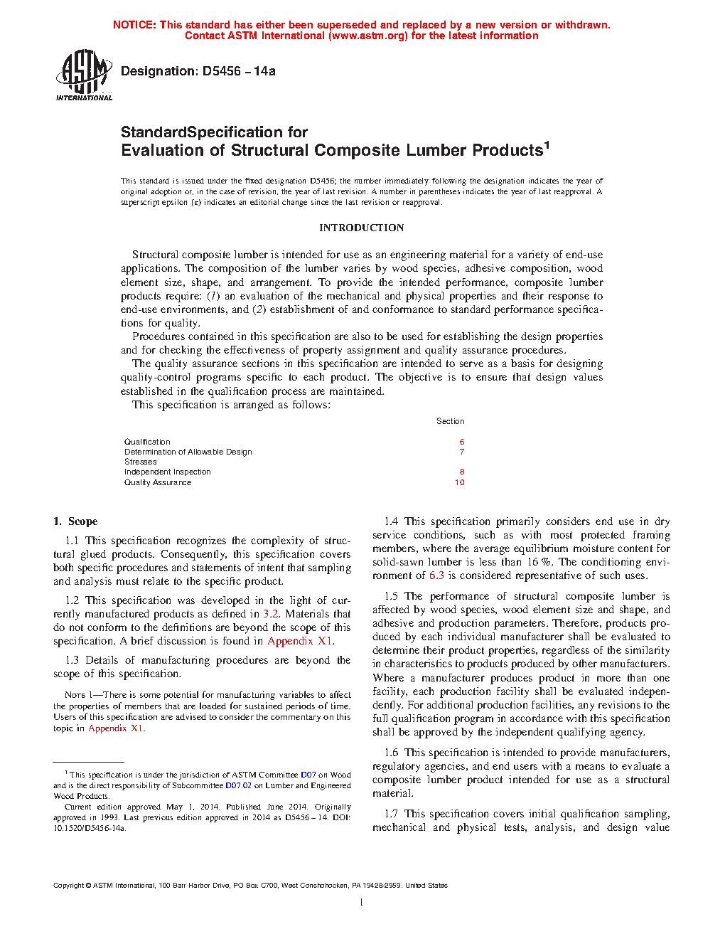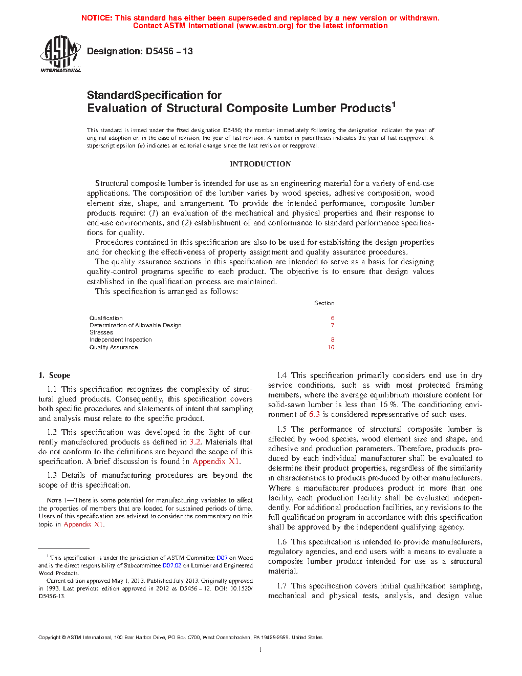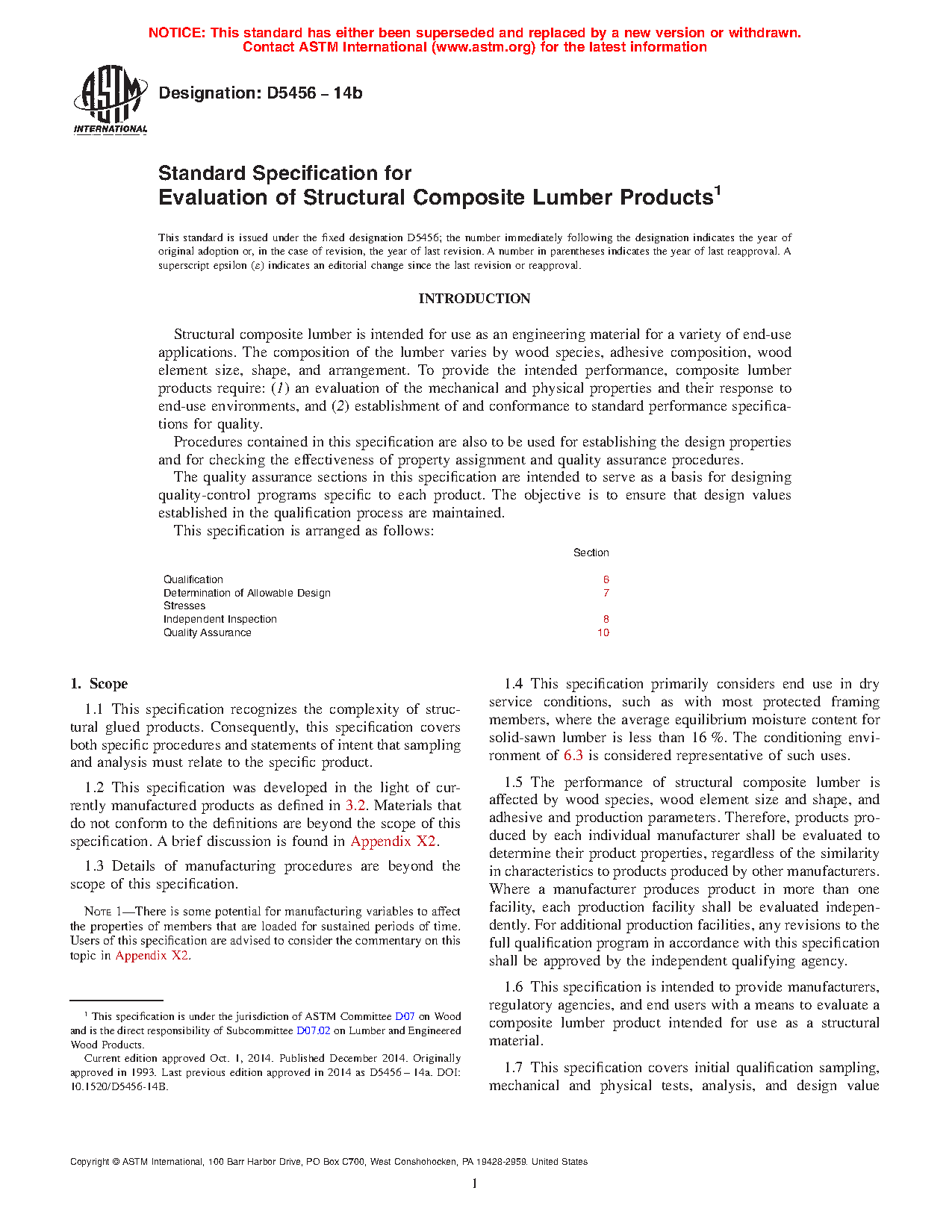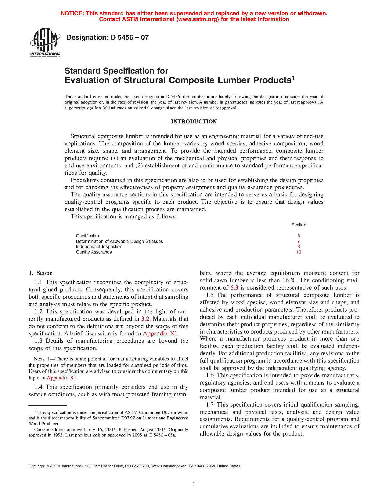 1.6 This specification is intended to provide manufacturers, regulatory agencies, and end users with a means to evaluate a composite lumber product intended for use as a structural material.