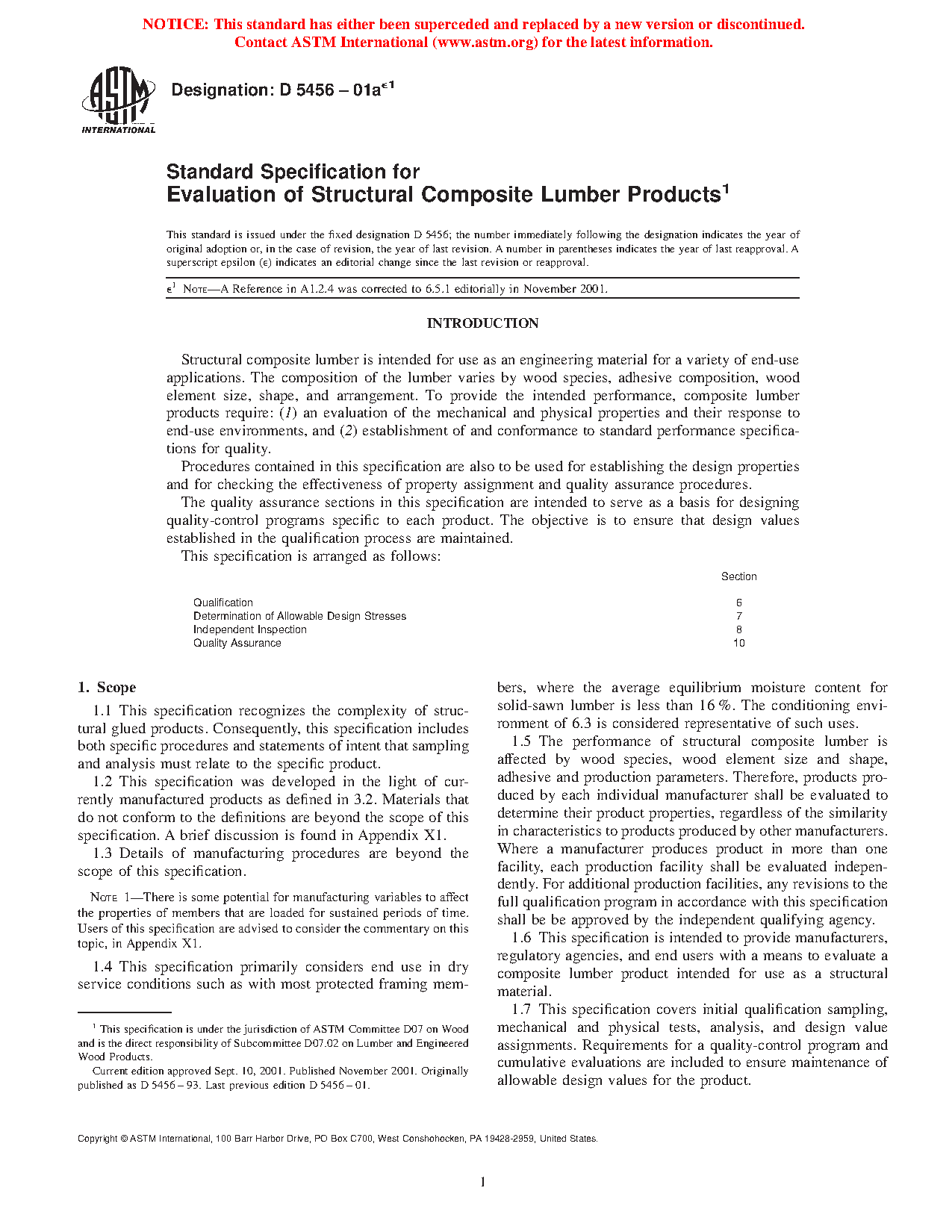 1.8 This specification, or parts thereof, shall be applicable to structural composite lumber portions of manufactured structural components.