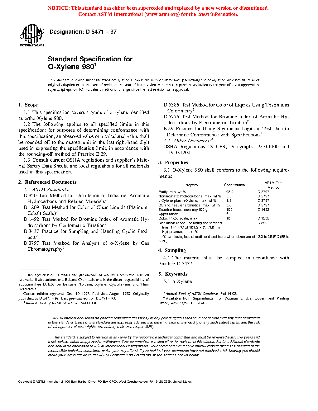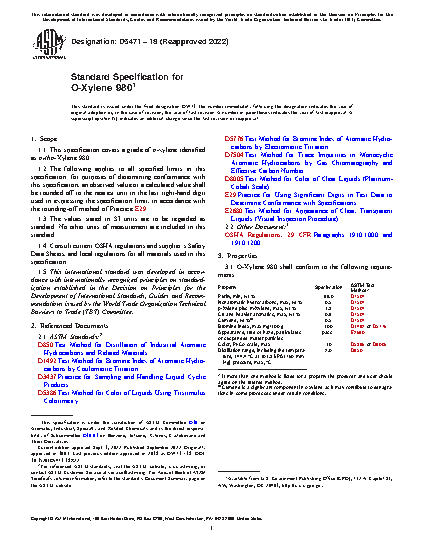 1.1 This specification covers a grade of o-xylene identified as ortho-Xylene 980.