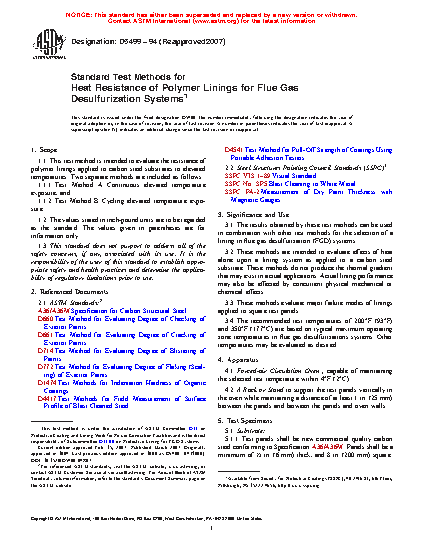 Standard Test Methods for Heat Resistance of Polymer Linings for Flue Gas Desulfurization Systems