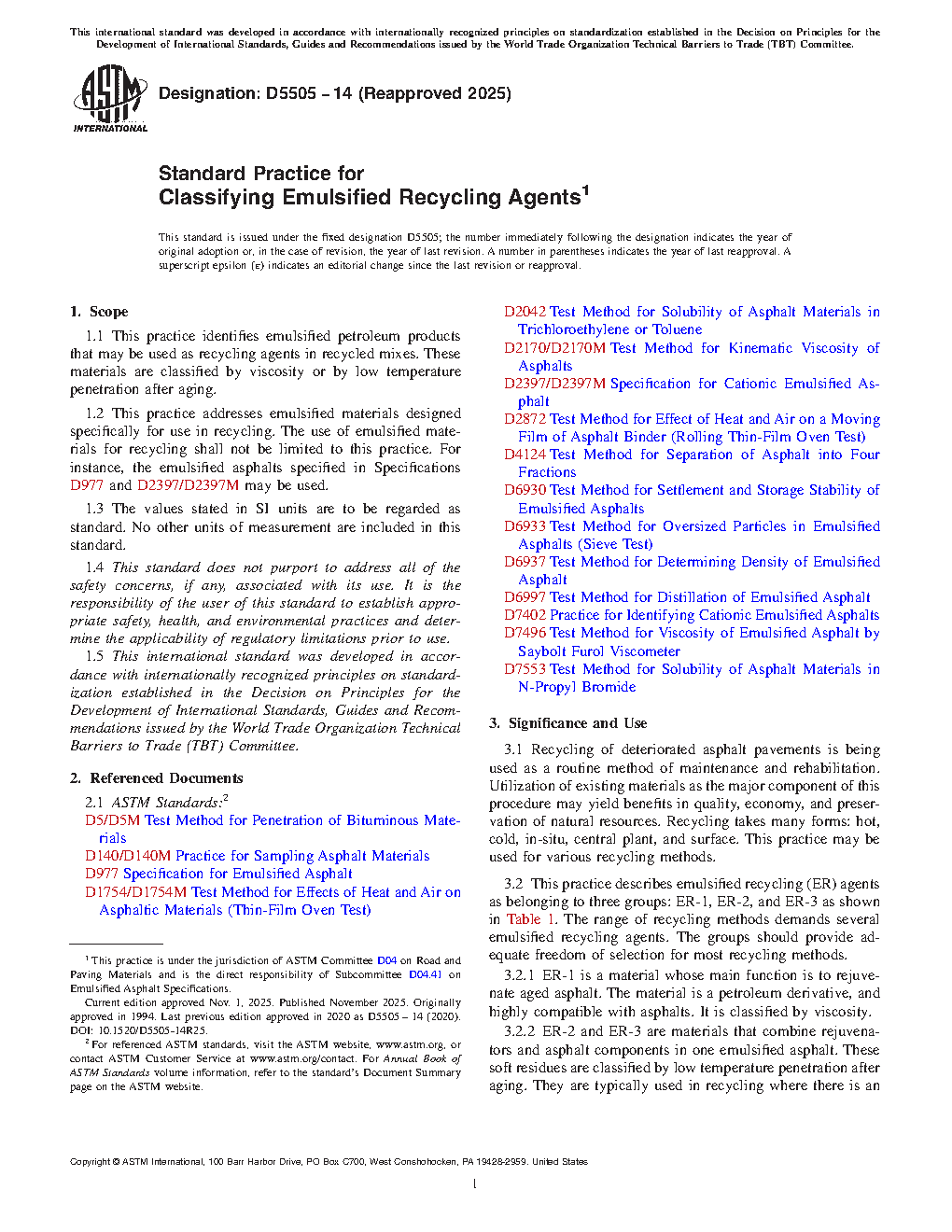 1.2 This practice addresses emulsified materials designed specifically for use in recycling. The use of emulsified materials for recycling shall not be limited to this practice. For instance, the emulsions specified in Specifications D 977 and D 2397 may be used.