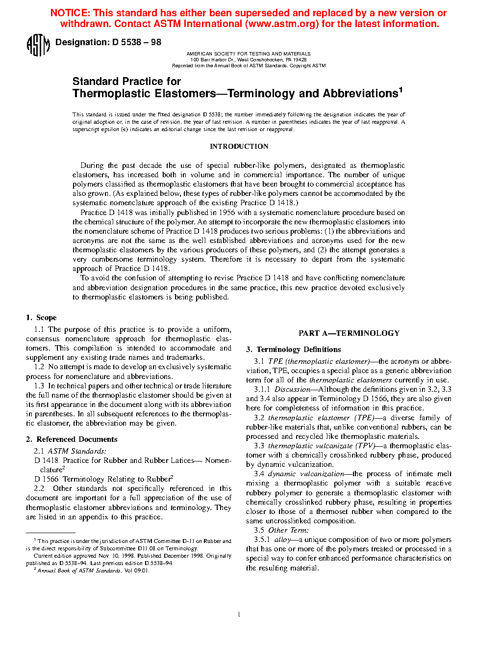 1.1 This practice covers a uniform, consensus nomenclature approach for thermoplastic elastomers. This compilation is intended to accommodate and supplement any existing trade names and trademarks.