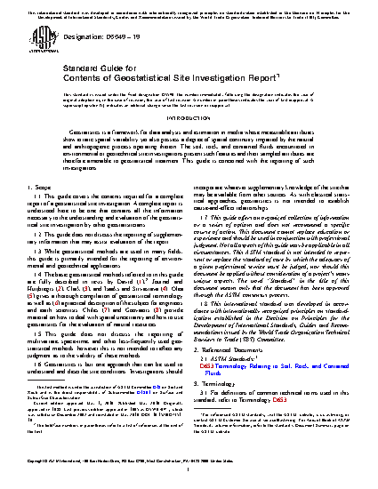 5.1 This guide is intended to encourage consistency and thoroughness in the reporting of geostatistical site investigations by describing the basic information required in a complete report.