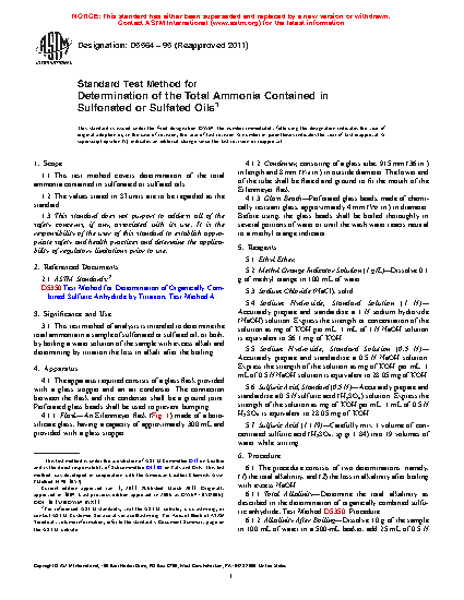 1.1 This test method covers determination of the total ammonia contained in sulfonated or sulfated oils.