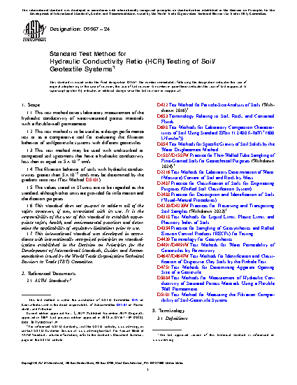 1.1 This test method covers laboratory measurement of the hydraulic conductivity of water-saturated porous materials with a flexible-wall permeameter.