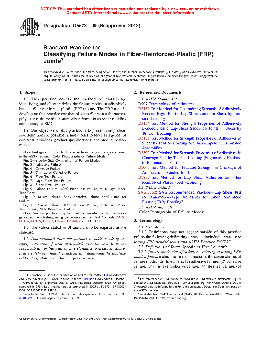 Note 2-This practice may be used to describe the failure modes generated from testing, using procedures such as Test Methods D 3163, D 3164, D 3165, D 3807, D 5041, D 5868 , and SAE J1525.