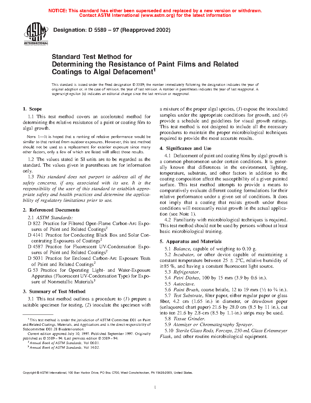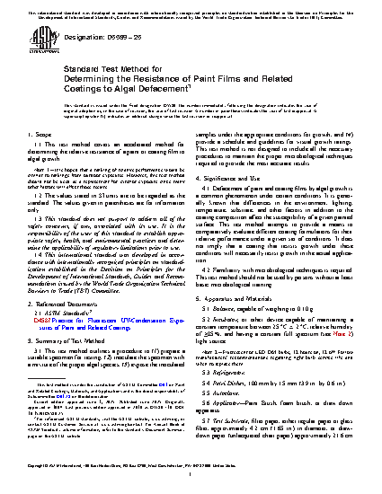 1.1 This test method covers an accelerated method for determining the relative resistance of a paint or coating film to algal growth.
