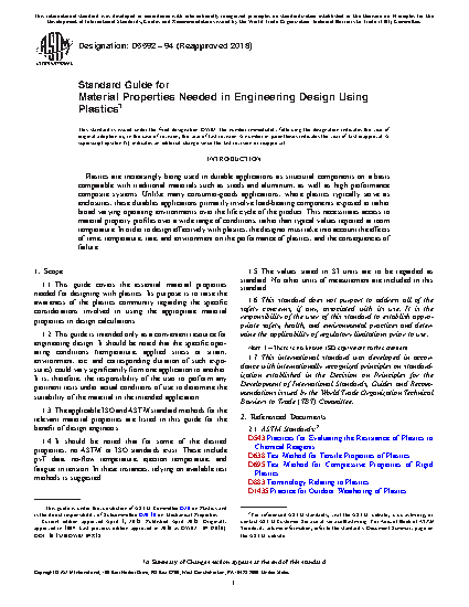 1.3 The applicable ISO and ASTM standard methods for the relevant material properties are listed in this guide for the benefit of design engineers.