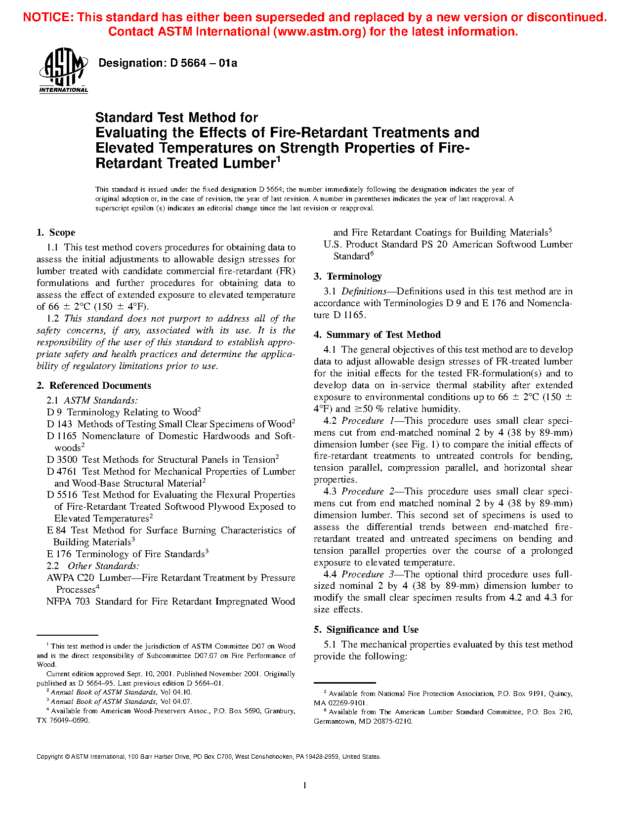 5.1.1 Data for use in developing modification factors for the allowable design properties of fire-retardant treated lumber when used at or near room temperatures (see 6.3).
