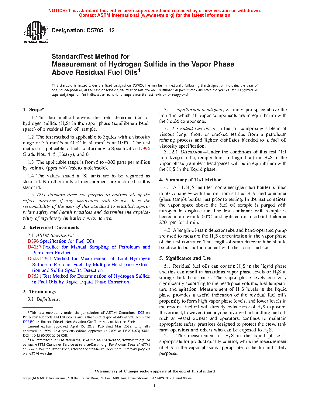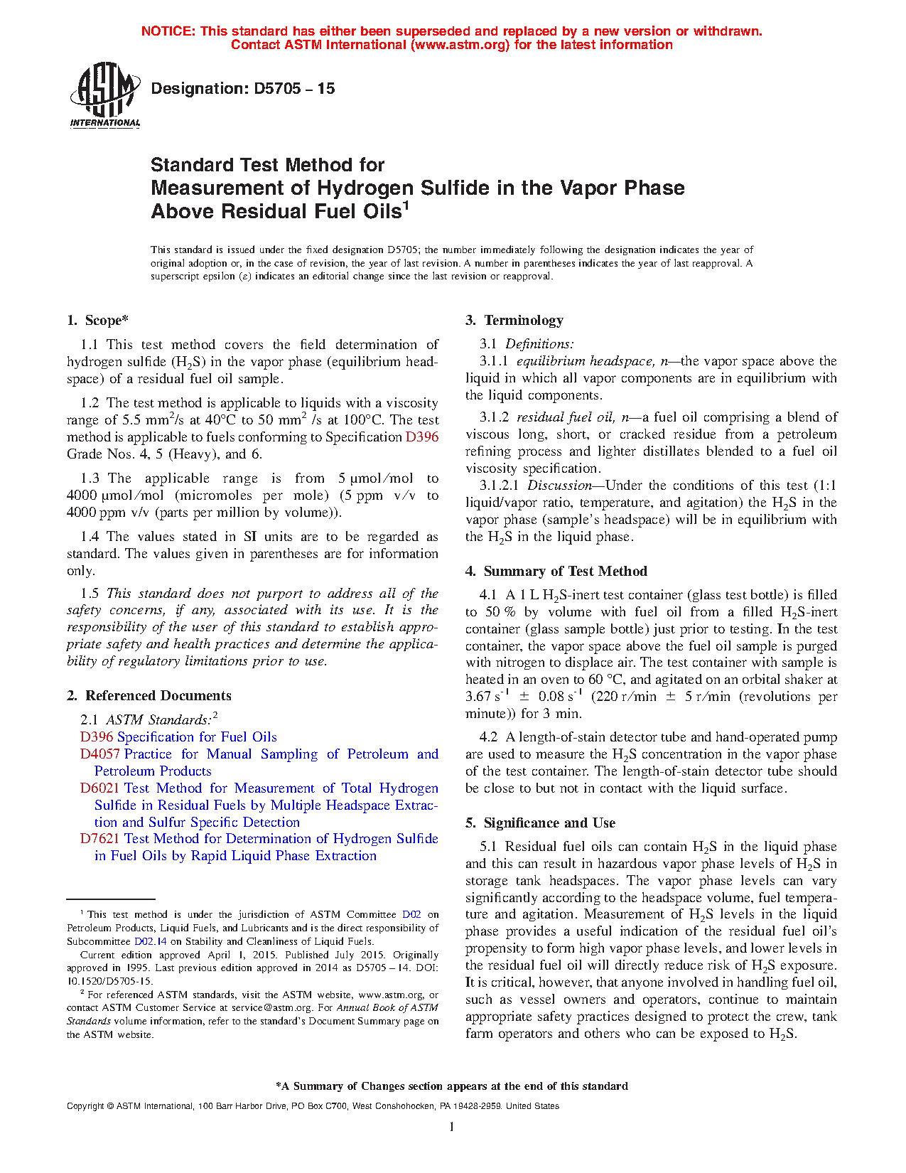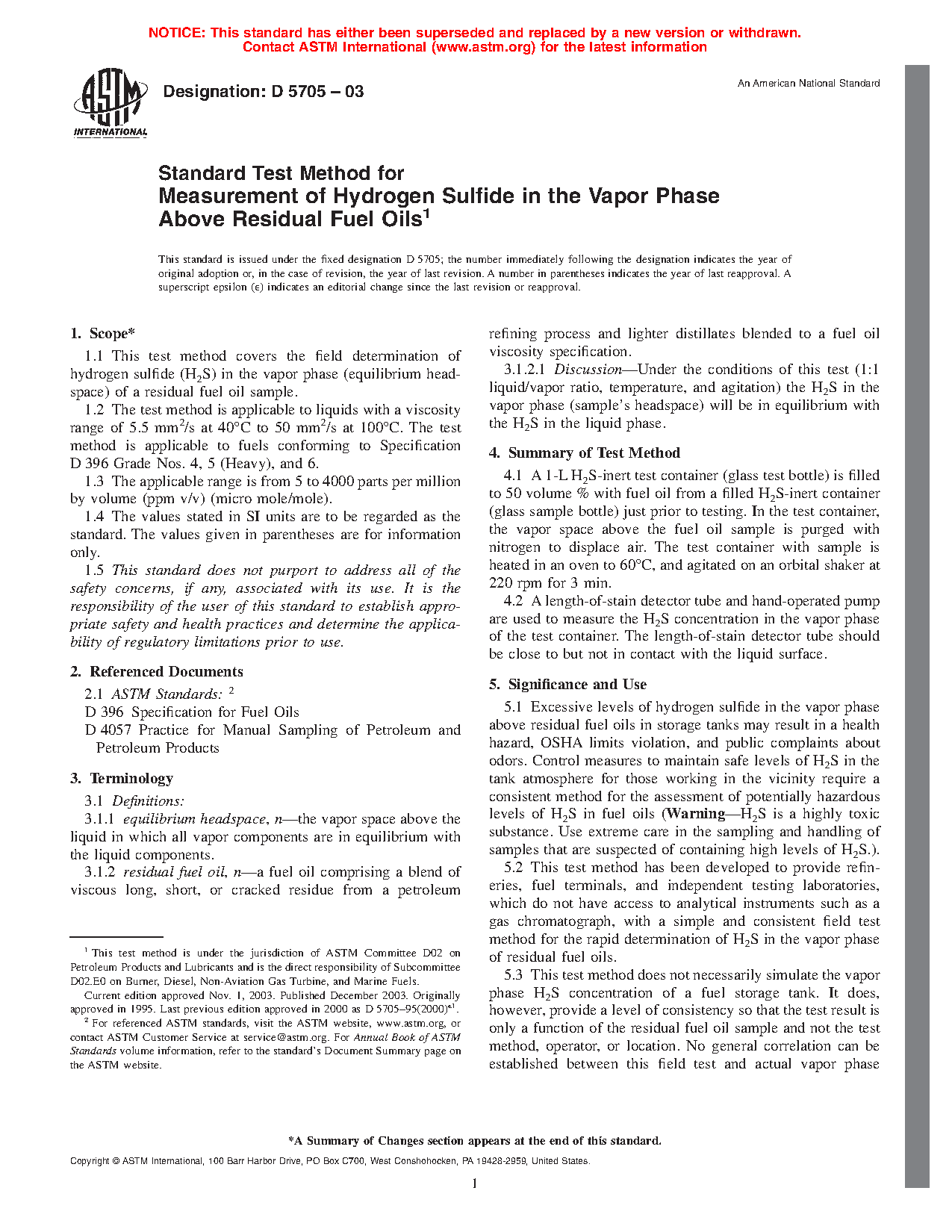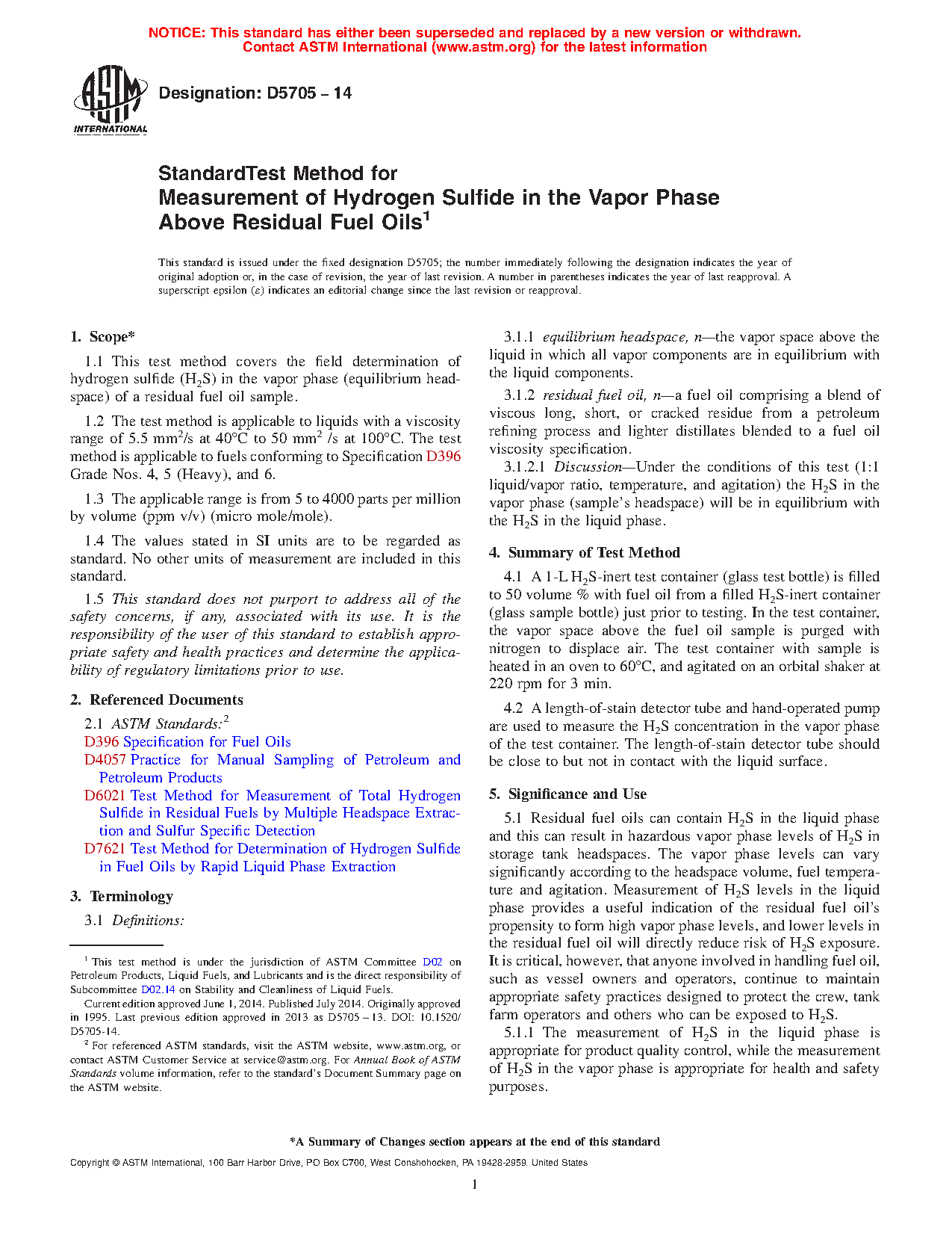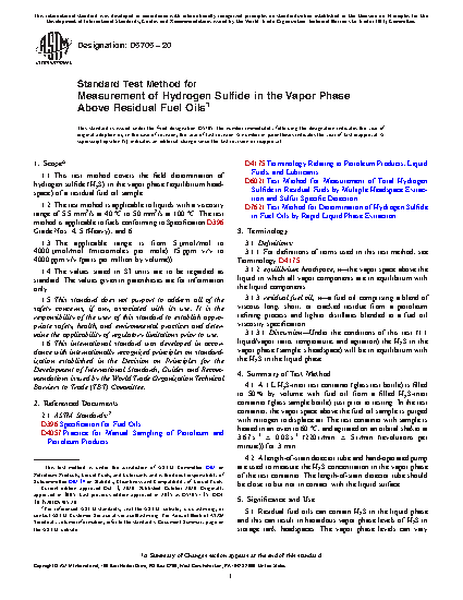 1.1 This test method covers the field determination of hydrogen sulfide (H S) in the vapor phase (equilibrium headspace) of a residual fuel oil sample.