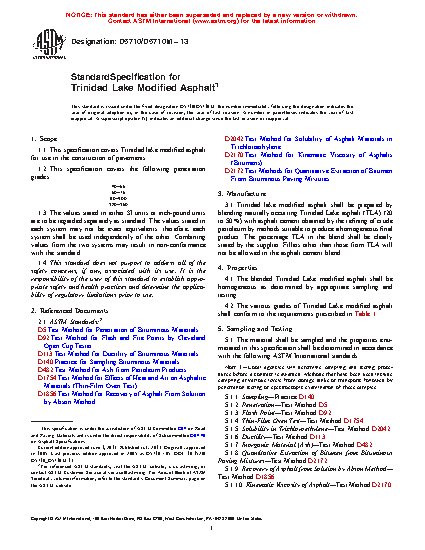 1.1 This specification covers Trinidad Lake modified asphalt for use in the construction of pavements.