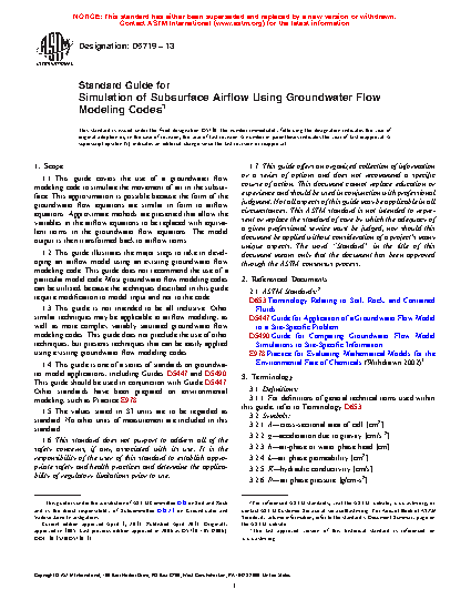 5.4 Use of this guide to simulate subsurface air movement does not guarantee that the airflow model is valid. This guide simply describes mathematical techniques for simulating subsurface air movement with groundwater modeling codes. As with any modeling study, the modeler must have a thorough understanding of site conditions with supporting data in order to properly apply the techniques presented in this guide.