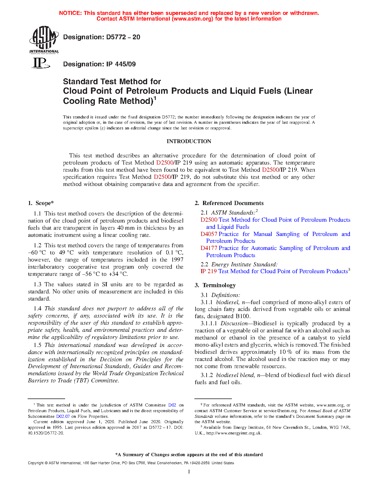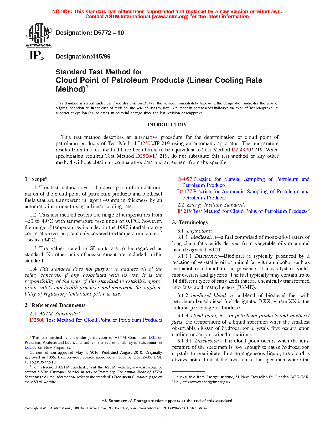 Standard Test Method for Cloud Point of Petroleum Products (Linear Cooling Rate Method)