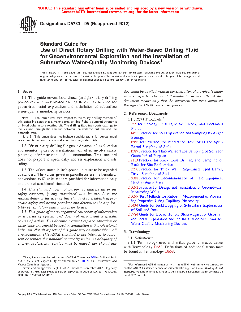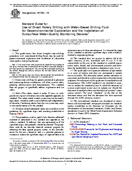 1.2 Direct-rotary drilling for geoenvironmental exploration and monitoring-device installations will often involve safety planning, administration and documentation. This standard does not purport to specifically address exploration and site safety.