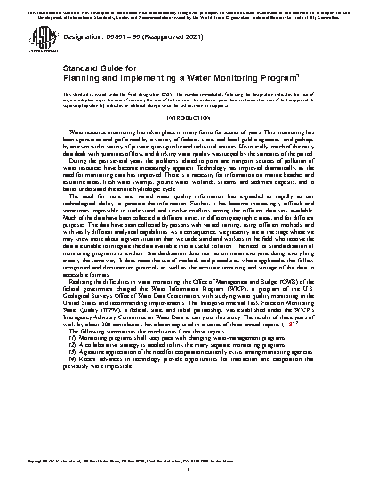 1.7 There are related standards currently available or under development and several documents that prescribe protocols for water monitoring (4-9). See also Section 2.