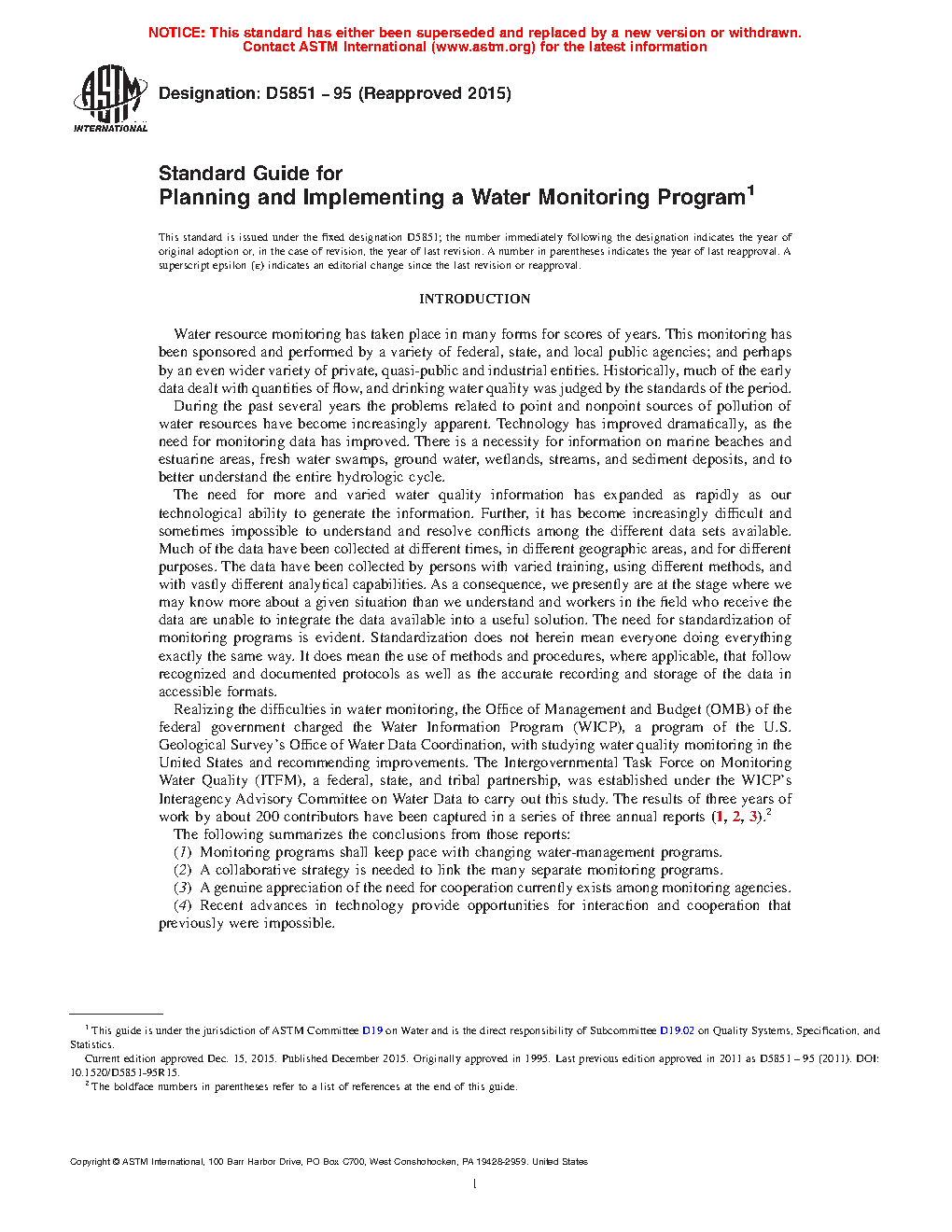 1.3 This guide is intended to outline for planners and administrators the components, process, and procedures which should be considered when proposing, planning, or implementing a monitoring program. The guide is not a substitute for obtaining specific technical advice. The reader is not assumed to be a technical practitioner in the water field; however, practitioners will find it a good summary of practice and a handy checklist. Other standard guides have or will be prepared that address the necessary detail.