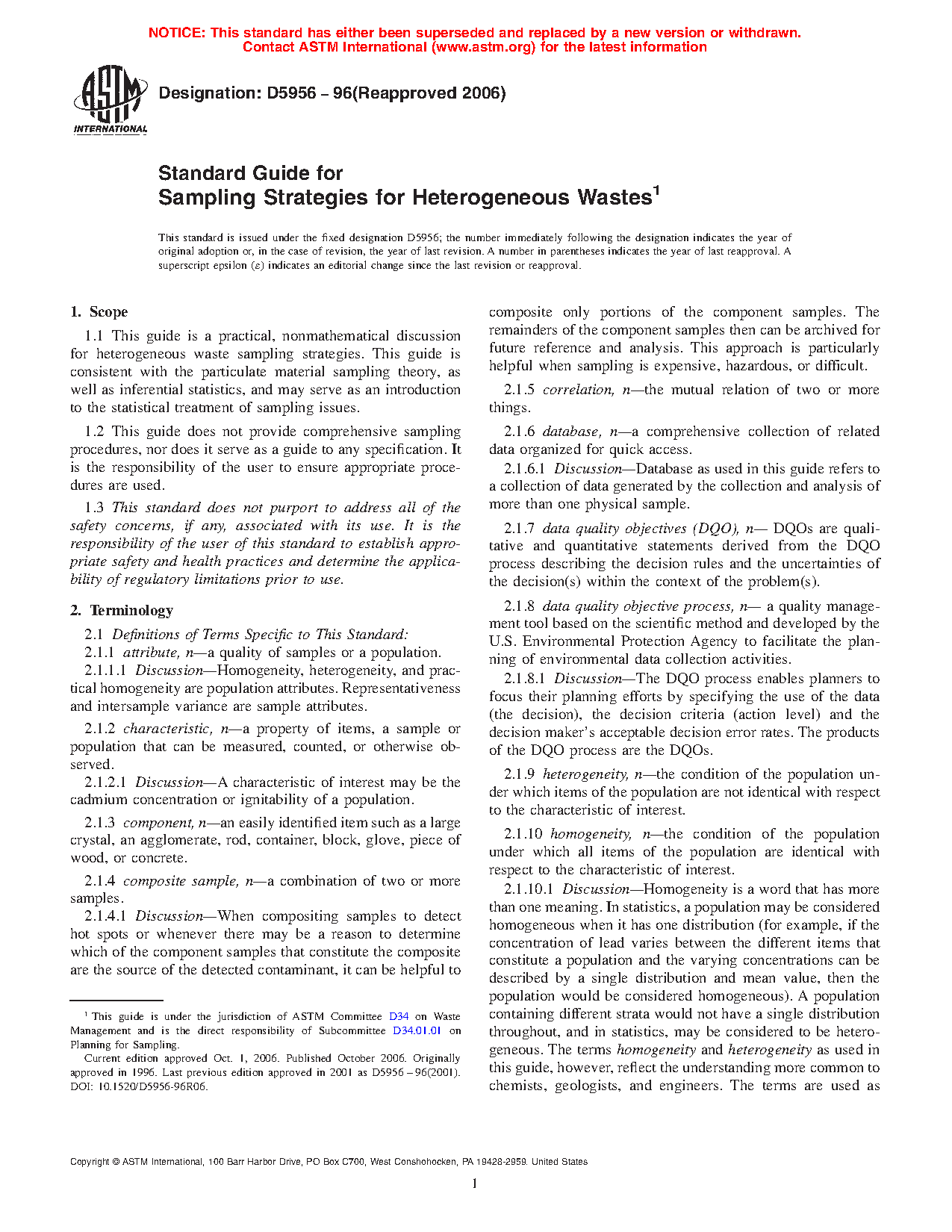 4.3 Sections 5 – 10 describe a guide for the sampling of heterogeneous waste according to project objectives. Appendix X1 describes an application of the guide to heterogeneous wastes. The user is strongly advised to read Annex A1 prior to reading and employing Sections 5 – 10 of this guide.