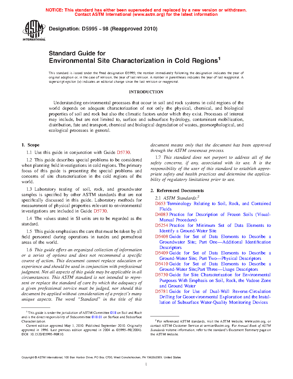 1.2 This guide describes special problems to be considered when planning field investigations in cold regions. The primary focus of this guide is presenting the special problems and concerns of site characterization in the cold regions of the world.