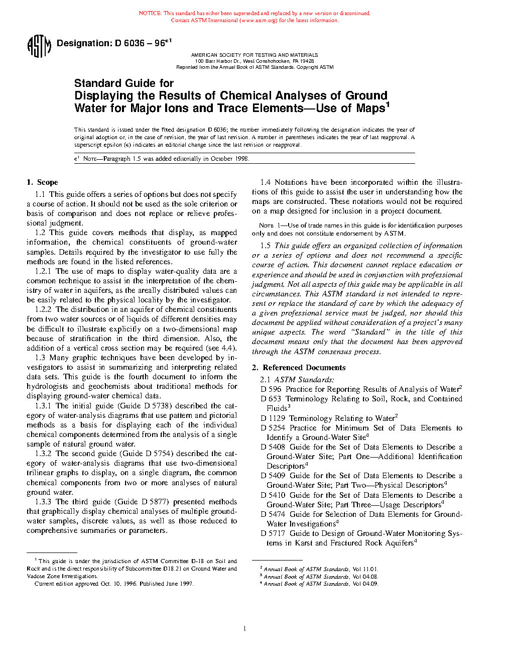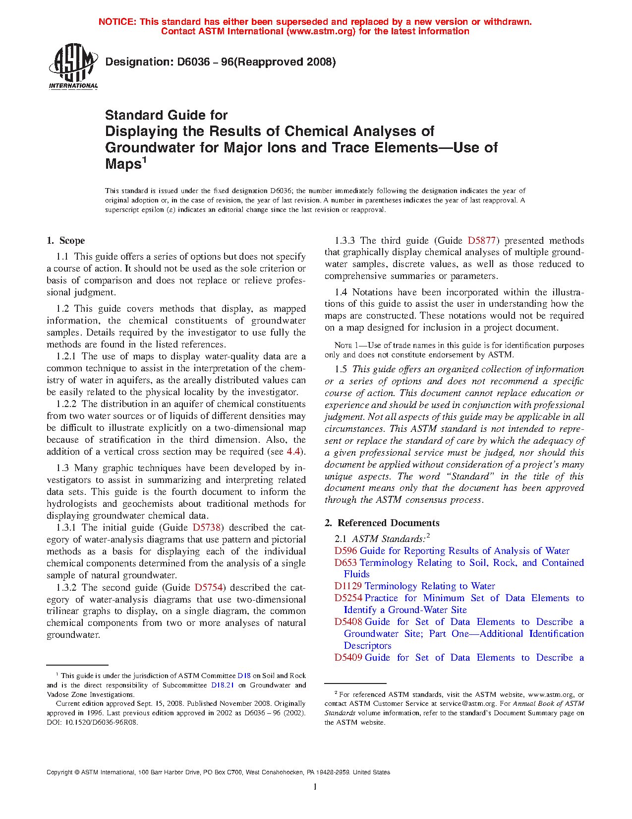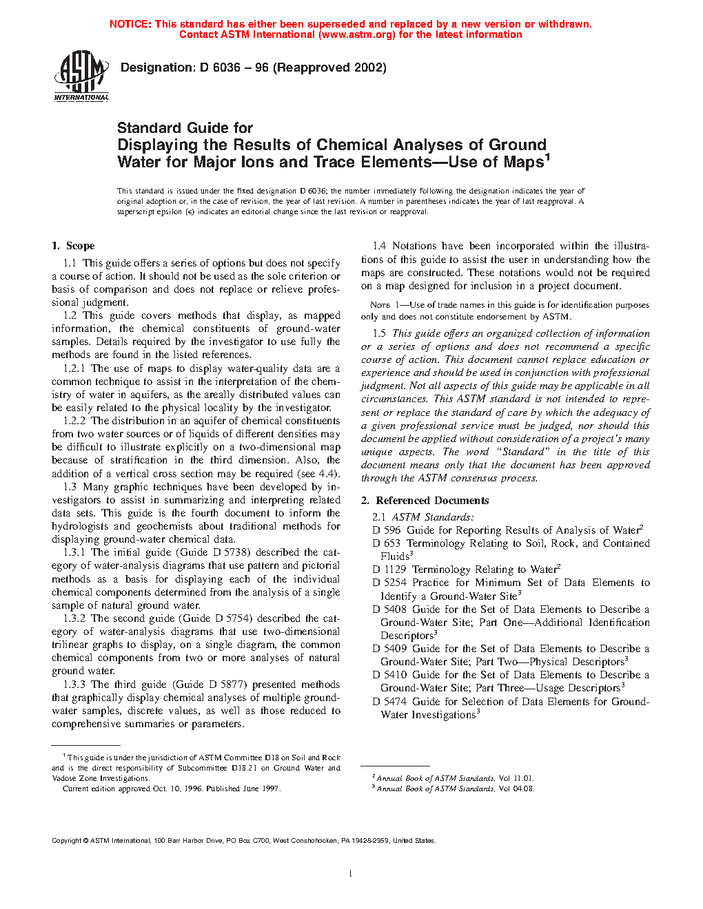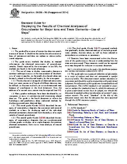 1.2 This guide covers methods that display, as mapped information, the chemical constituents of groundwater samples. Details required by the investigator to use fully the methods are found in the listed references.