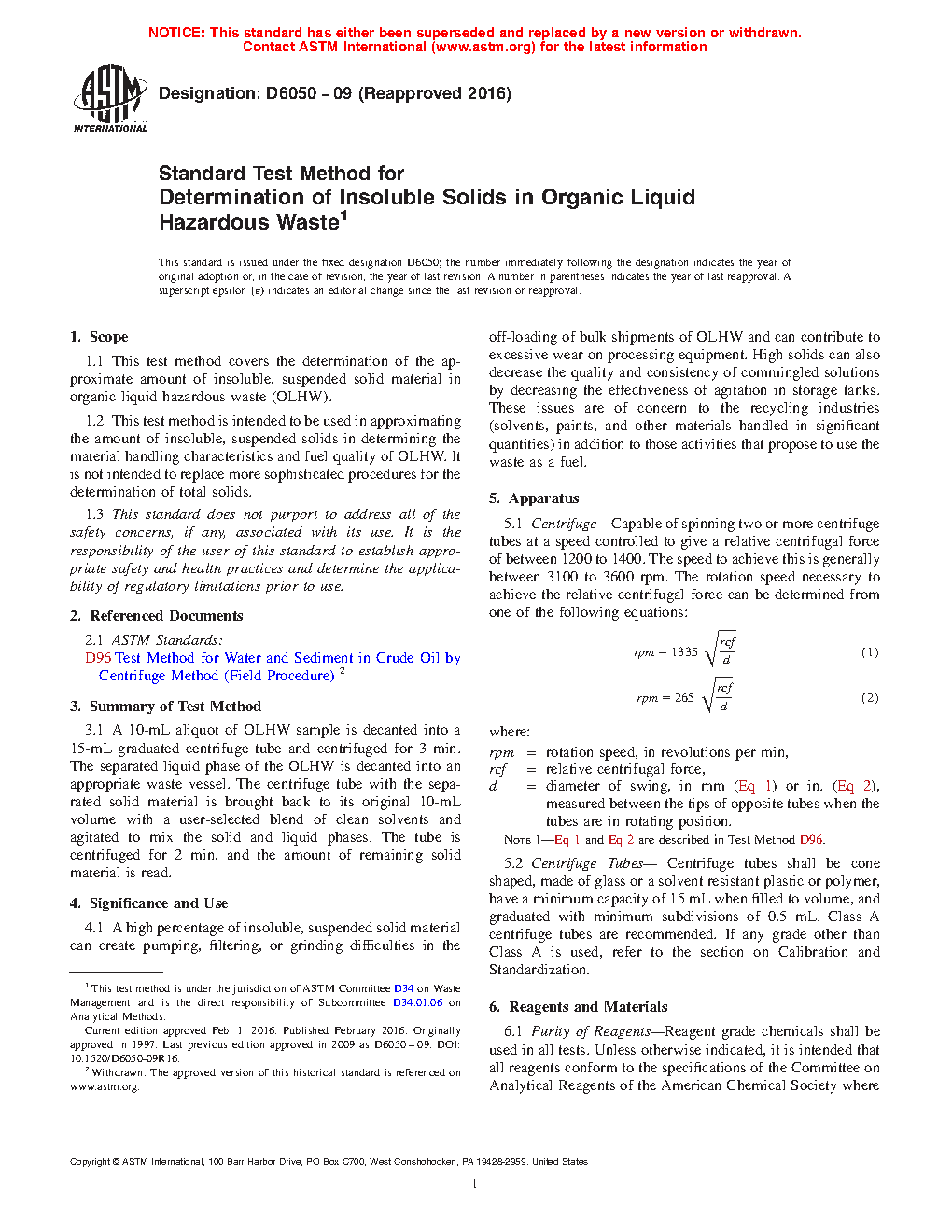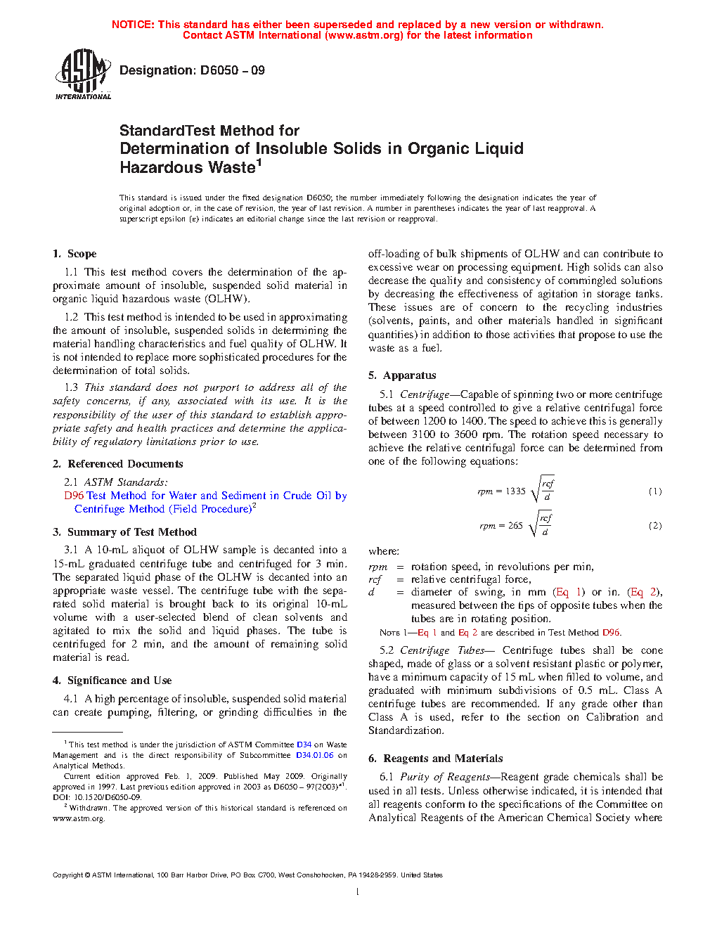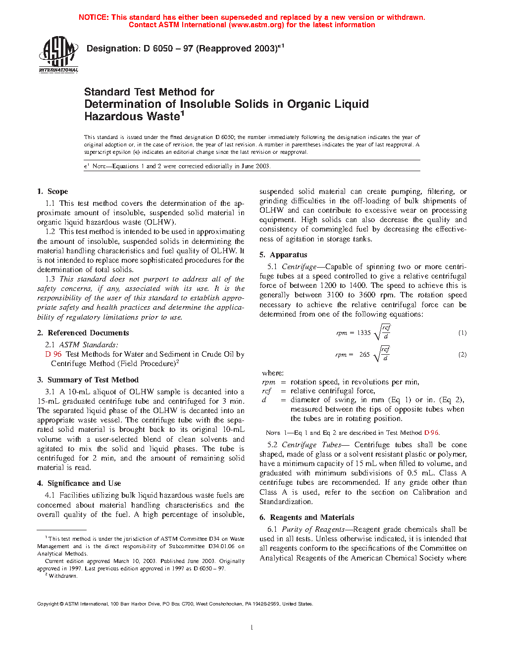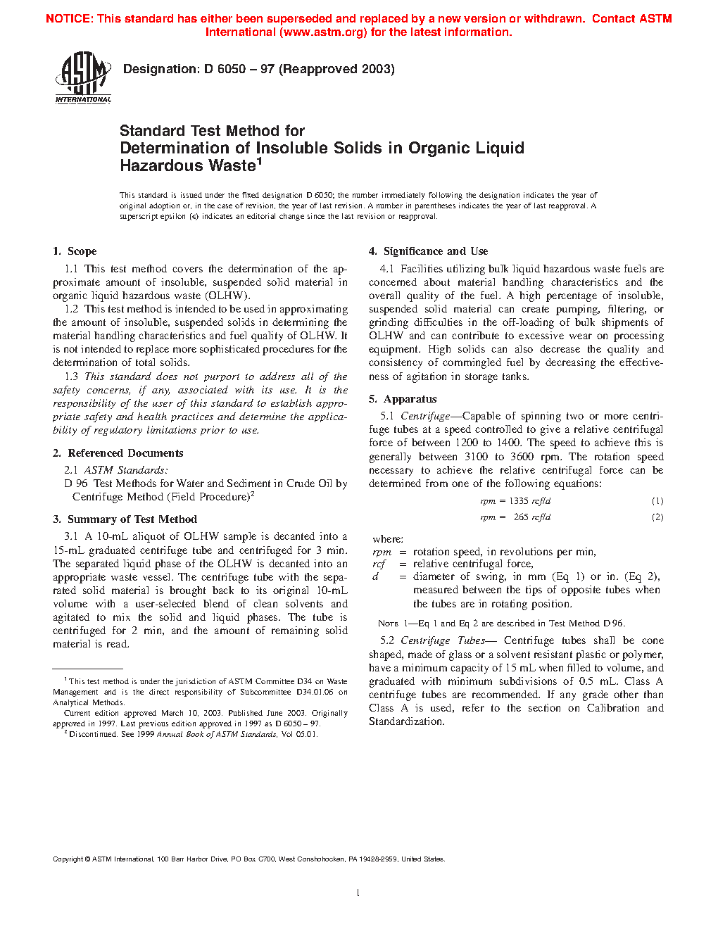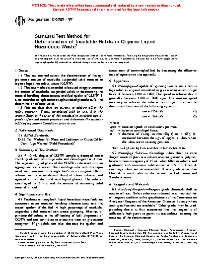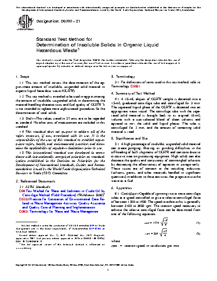 1.1 This test method covers the determination of the approximate amount of insoluble, suspended solid material in organic liquid hazardous waste (OLHW).