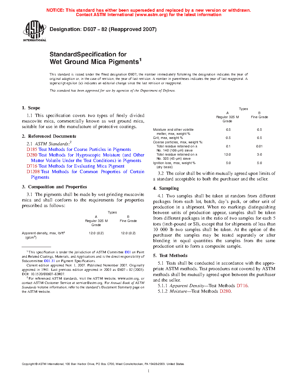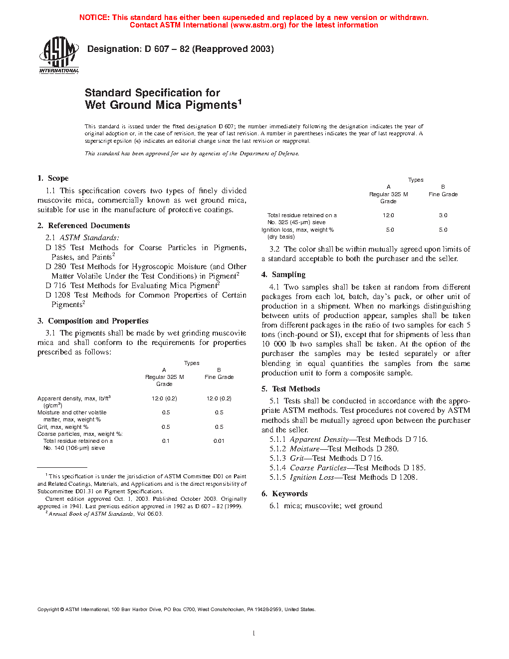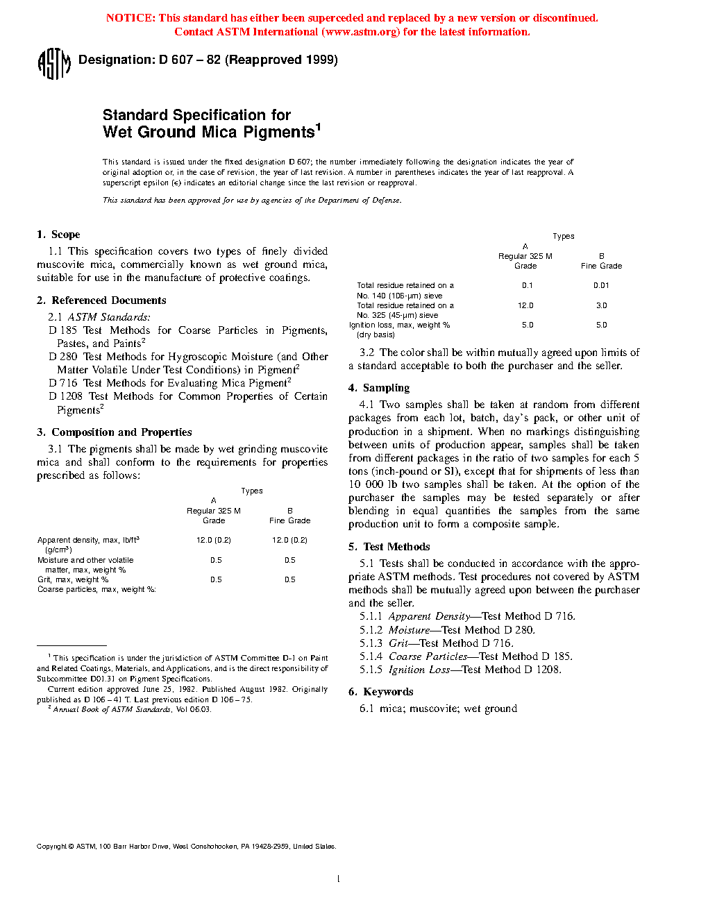 1.1 This specification covers two types of finely divided muscovite mica, commercially known as wet ground mica, suitable for use in the manufacture of protective coatings.