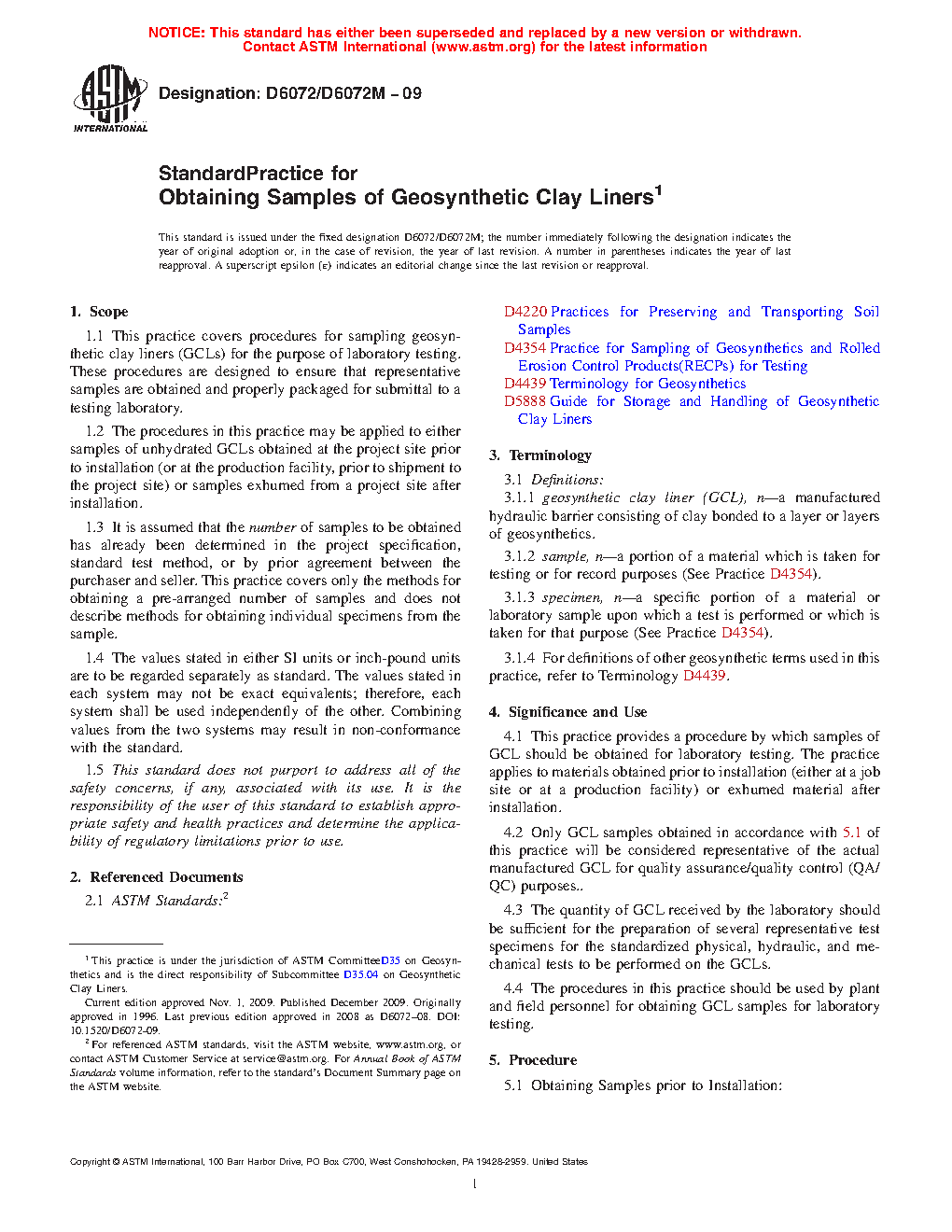1.2 The procedures in this practice may be applied to either samples of unhydrated GCLs obtained at the project site prior to installation (or at the production facility, prior to shipment to the project site) or samples exhumed from a project site after installation.