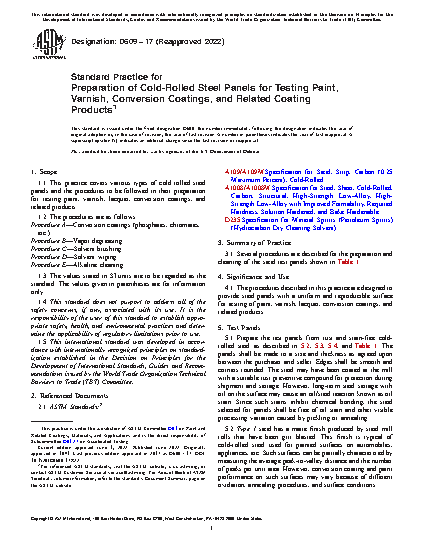 1.1 This practice covers various types of cold rolled steel panels and the procedures to be followed in their preparation for testing paint, varnish, lacquer, conversion coatings, and related products.