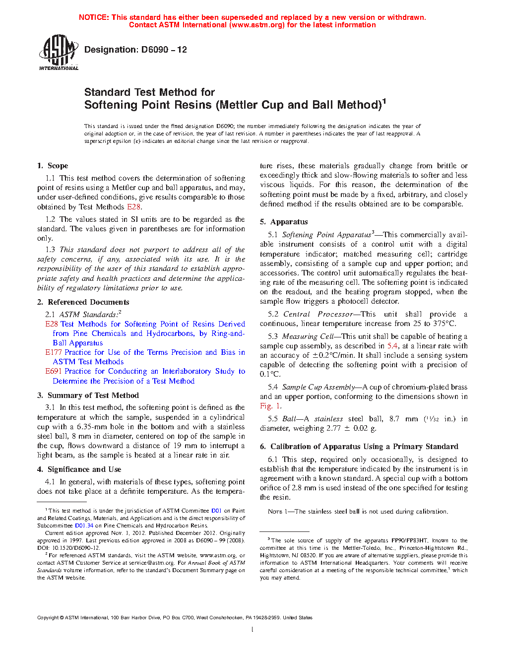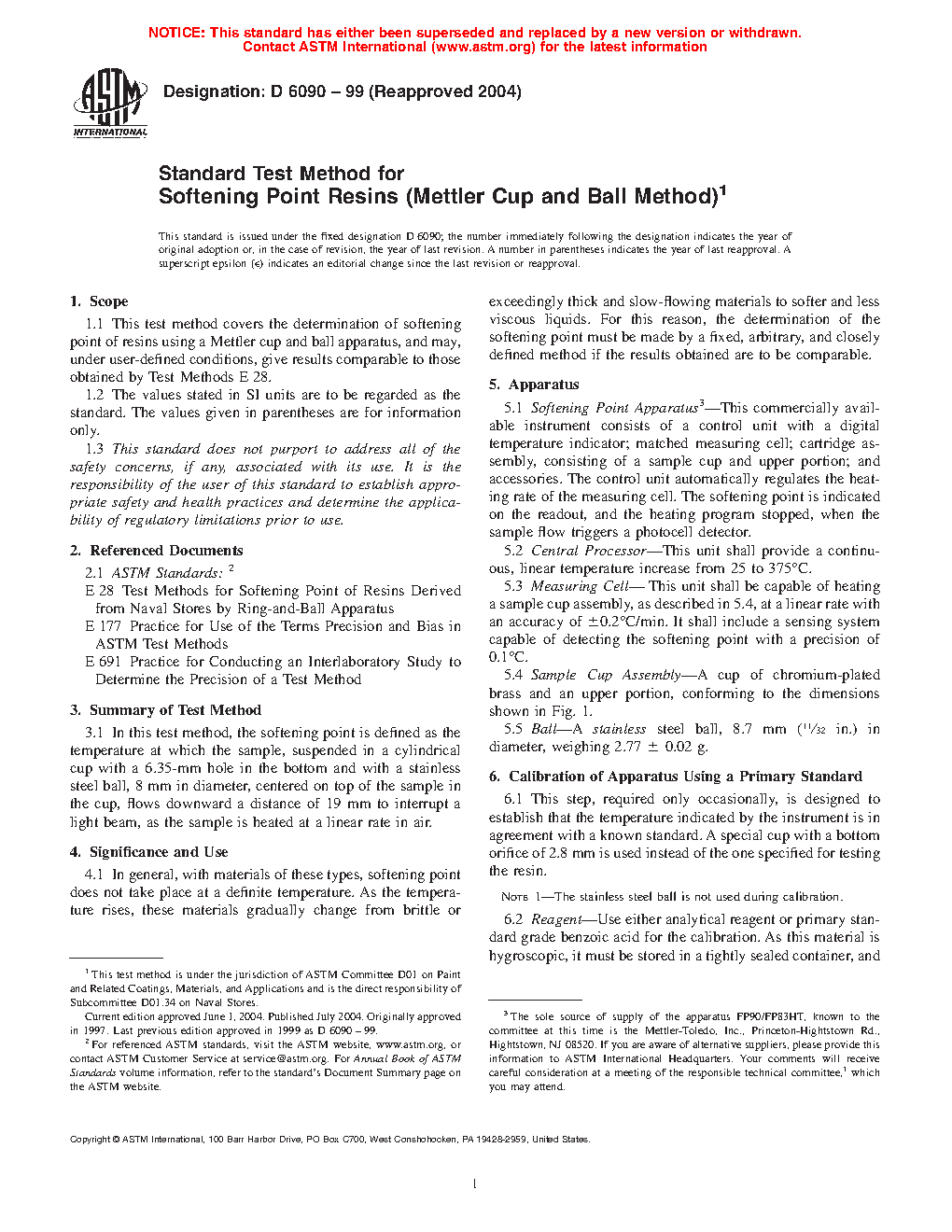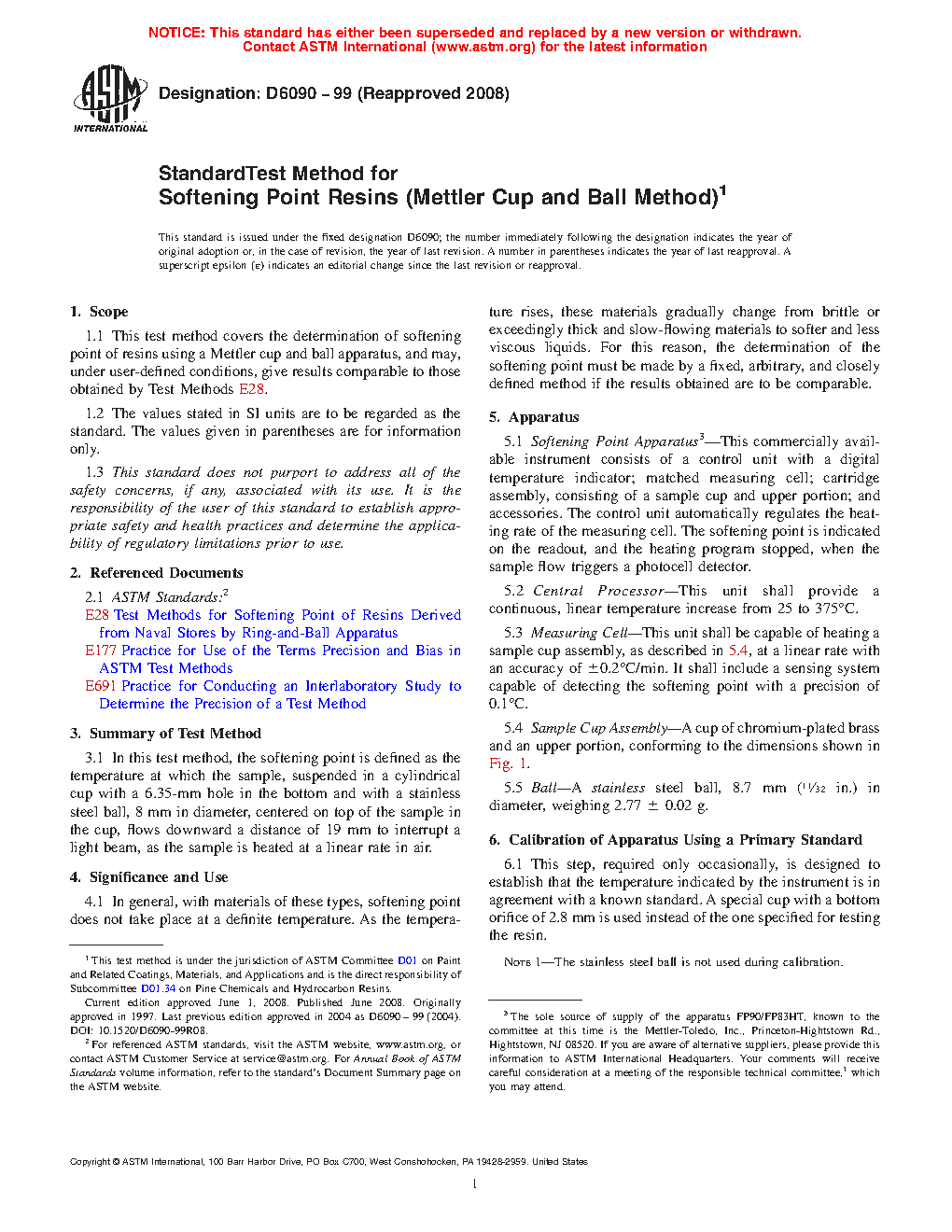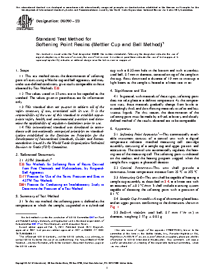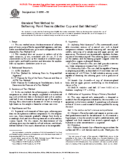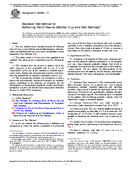 1.1 This test method covers the determination of softening point of resins using a Mettler cup and ball apparatus, and may, under user-defined conditions, give results comparable to those obtained by Test Methods E28.