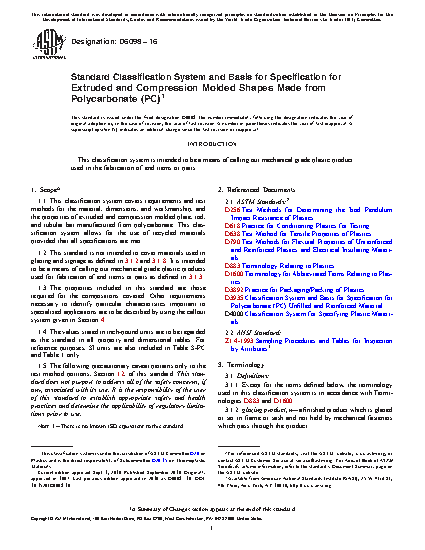 1.1 This classification system covers requirements and test methods for the material, dimensions, and workmanship, and the properties of extruded and compression molded plate, rod, and tubular bar manufactured from polycarbonate. This classification system allows for the use of recycled materials provided that all specifications are met.