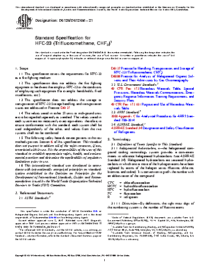 1.3 This specification does not address the storage or transportation of HFC-23 Storage handling, and transportation issues are addressed in Practice D6127.
