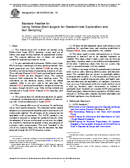 Standard Practice for Using Hollow-Stem Augers for Geotechnical Exploration and Soil Sampling (Withdrawn 2024)