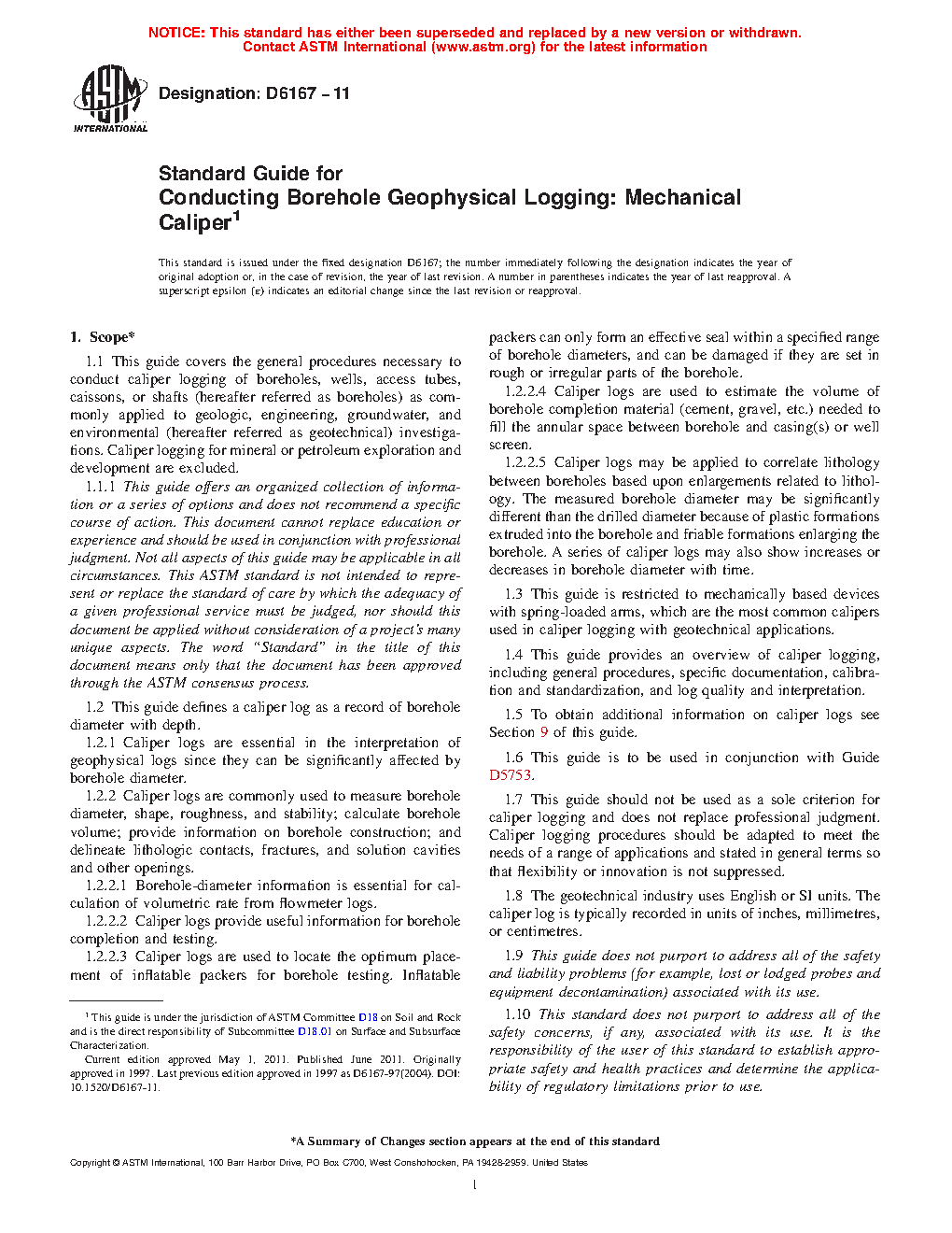 5.3 This guide applies to commonly used caliper logging methods for geotechnical applications.