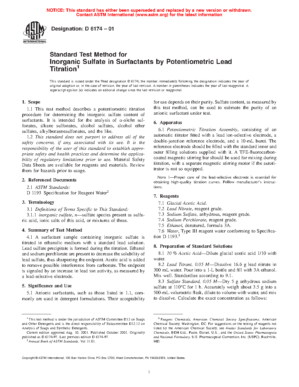 Standard Test Method for Inorganic Sulfate in Surfactants by Potentiometric Lead Titration