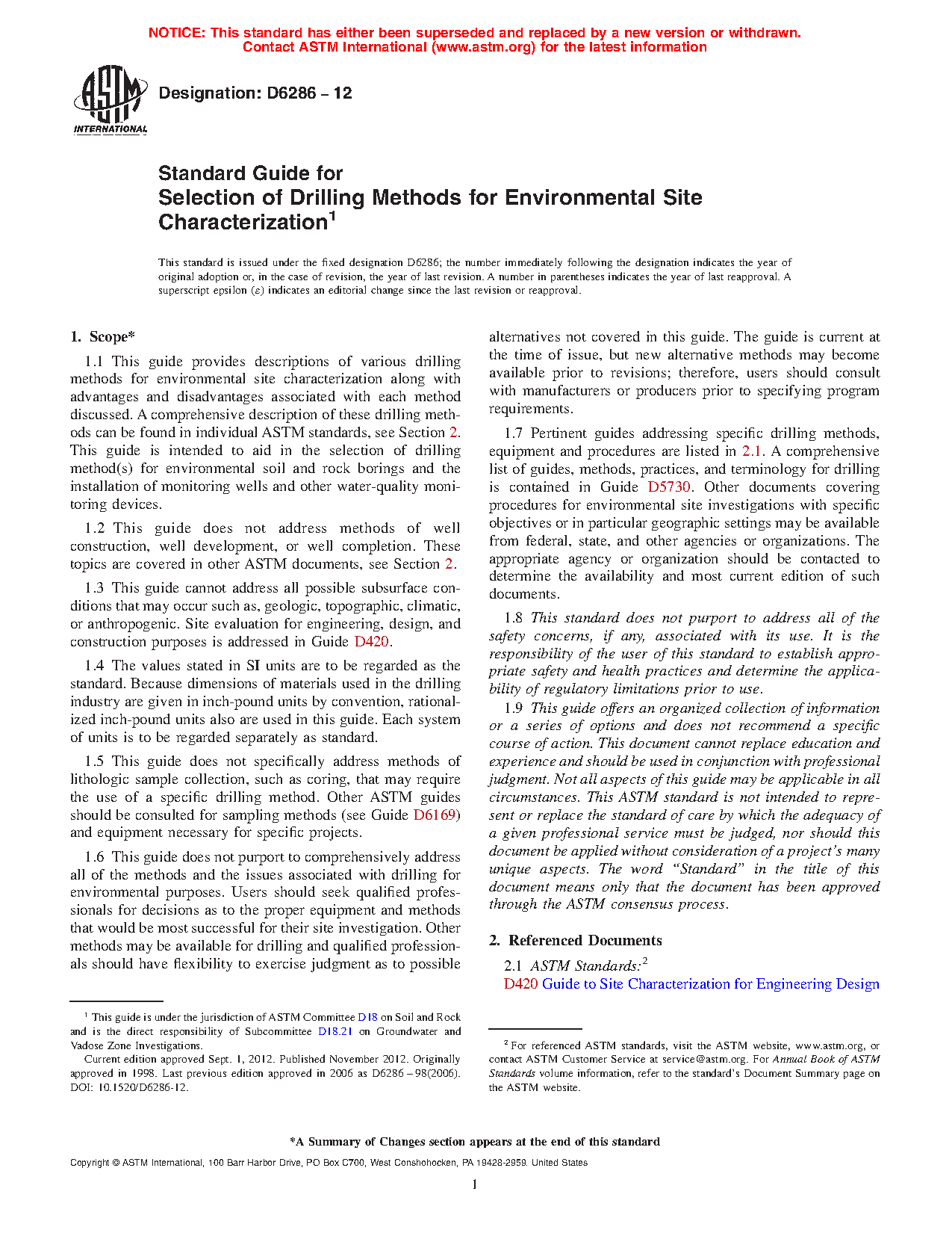 1.8 This guide does not purport to comprehensively address all of the methods and the issues associated with drilling for environmental purposes. Users should seek qualified professionals for decisions as to the proper equipment and methods that would be most successful for their site investigation. Other methods may be available for drilling and qualified professionals should have flexibility to exercise judgment as to possible alternatives not covered in this guide. The guide is current at the time of issue, but new alternative methods may become available prior to revisions; therefore, users should consult with manufacturers or producers prior to specifying program requirements.
