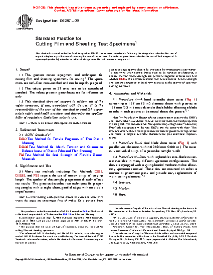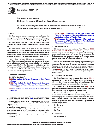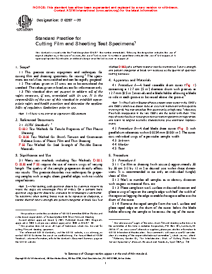 3.1 Many test methods including Test Methods D882, D2838, F88, F1921/F1921M, and F2029 require the use of narrow strips of varying length. The quality of the sample preparation directly affects test results. This practice describes three techniques for preparing samples with straight, clean, parallel edges with no visible imperfections.