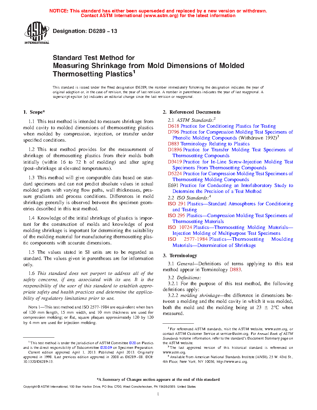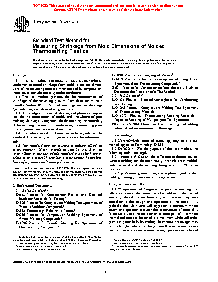1.4 Knowledge of the initial shrinkage of plastics is important for the construction of molds and knowledge of post molding shrinkage is important for determining the suitability of the molding material for manufacturing thermosetting plastic components with accurate dimensions.
