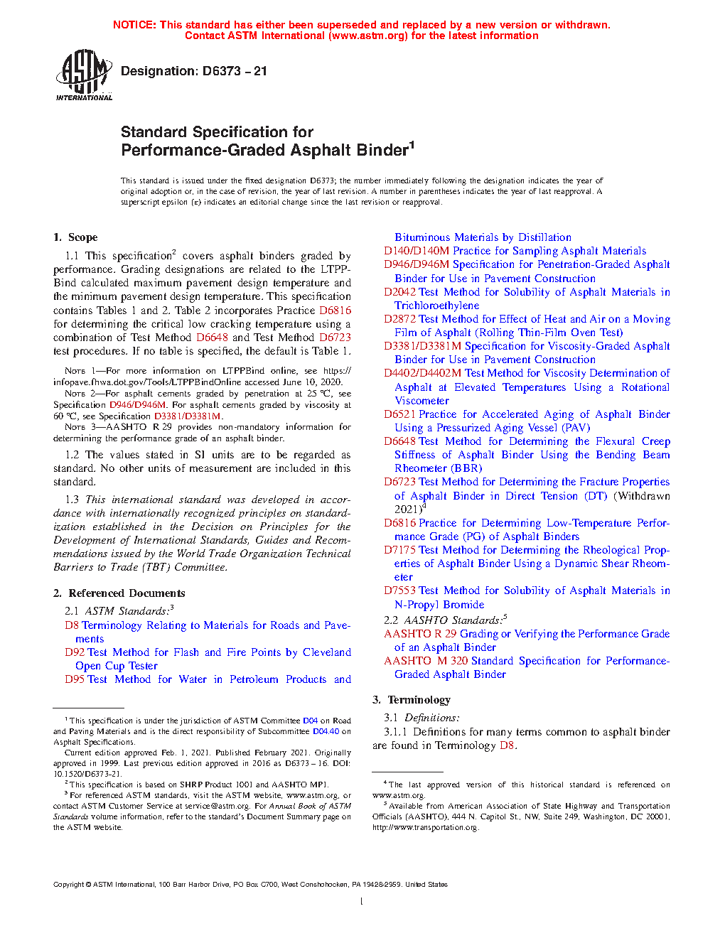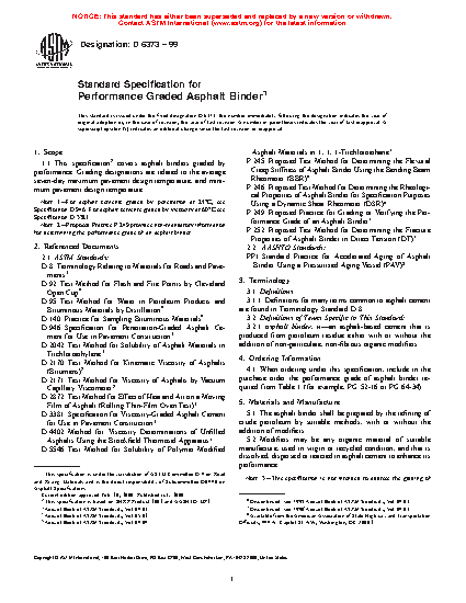 1.1 This specification covers asphalt binders graded by performance. Grading designations are related to the average seven-day maximum pavement design temperature, and minimum pavement design temperature.