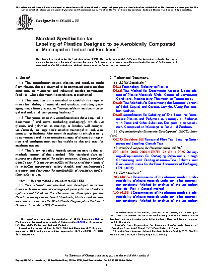 1.1 This specification covers plastics and products made from plastics that are designed to be composted in municipal and industrial aerobic composting facilities.