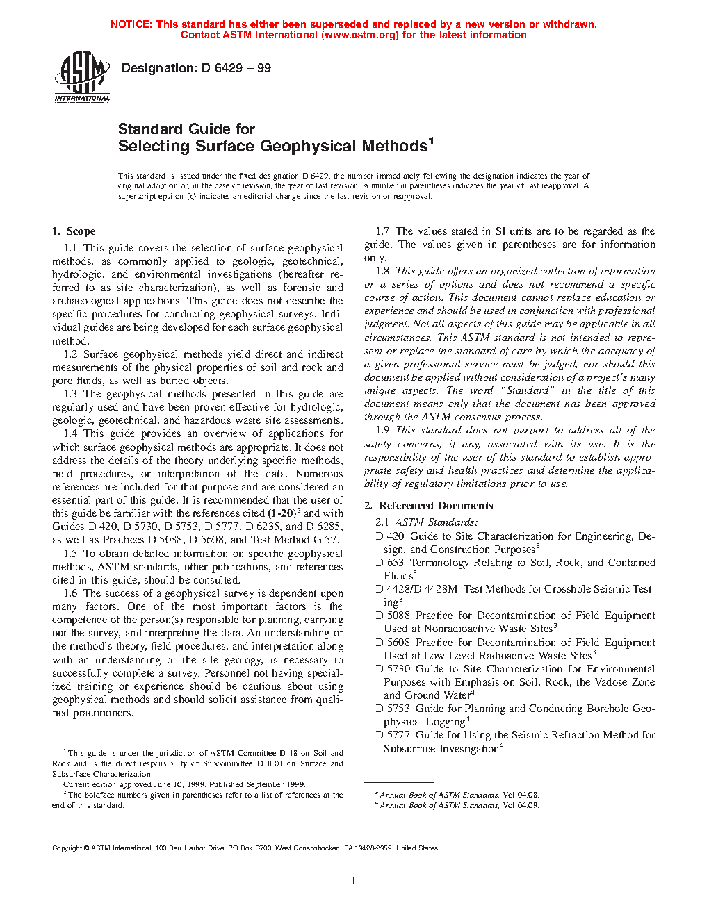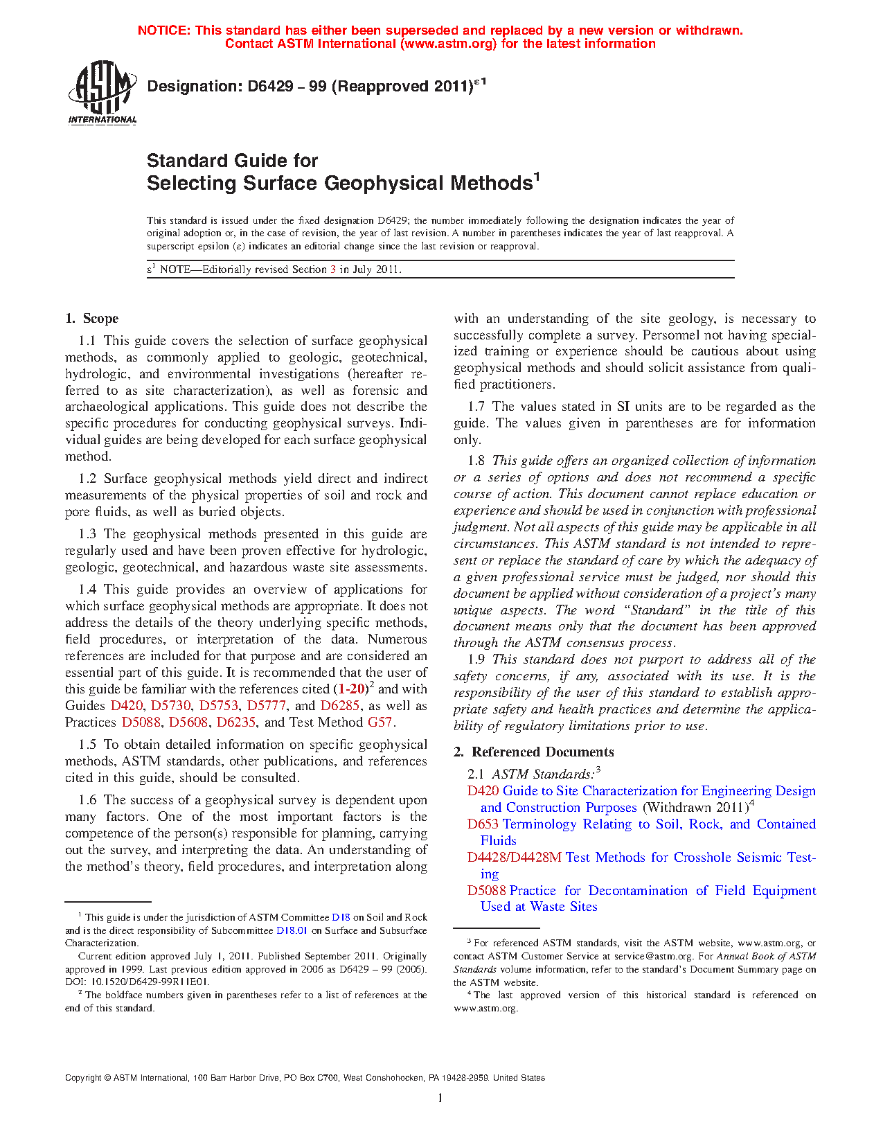 1.5 To obtain detailed information on specific geophysical methods, ASTM standards, other publications, and references cited in this guide, should be consulted.